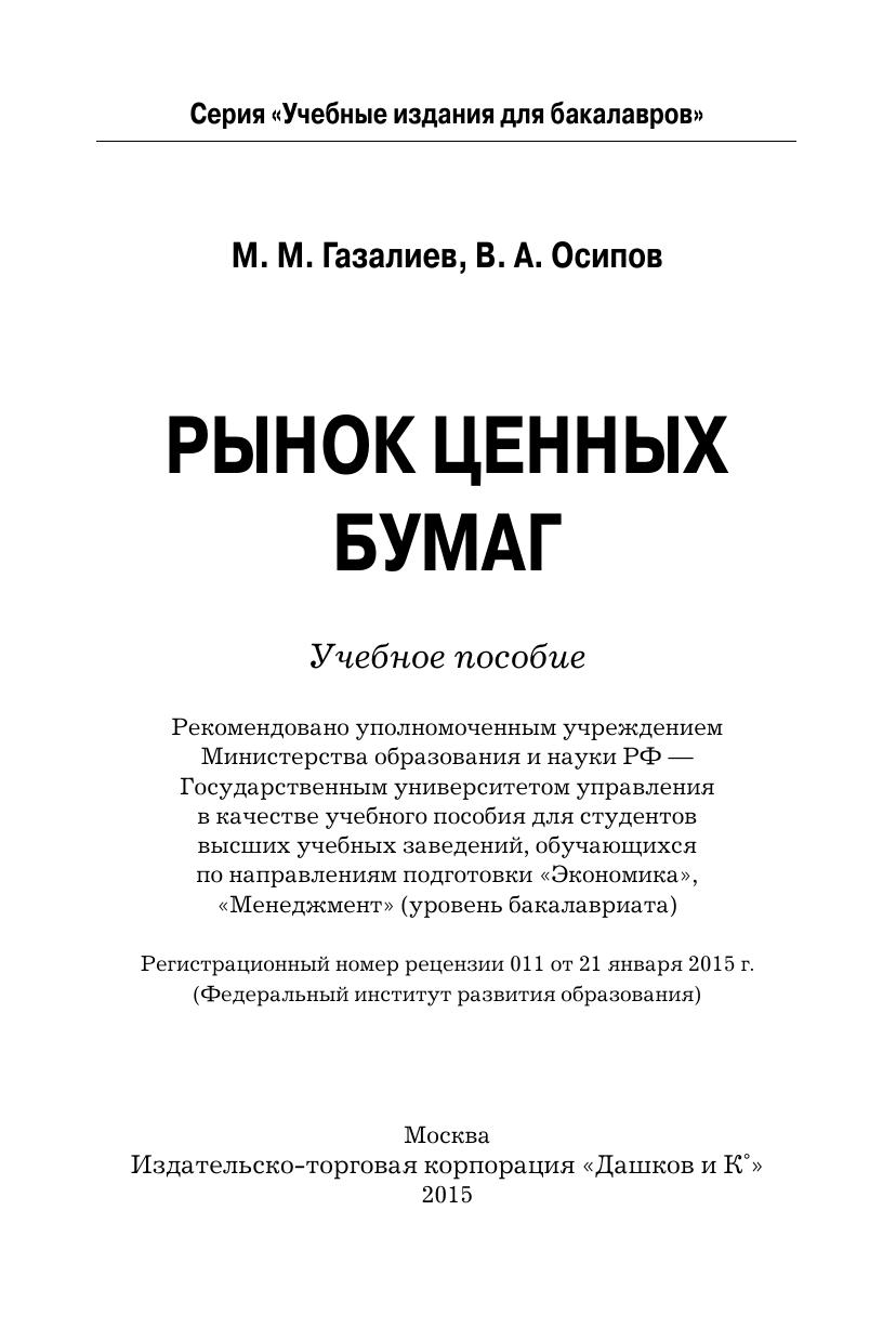 Рынок ценных бумаг: Учебное пособие для бакалавров