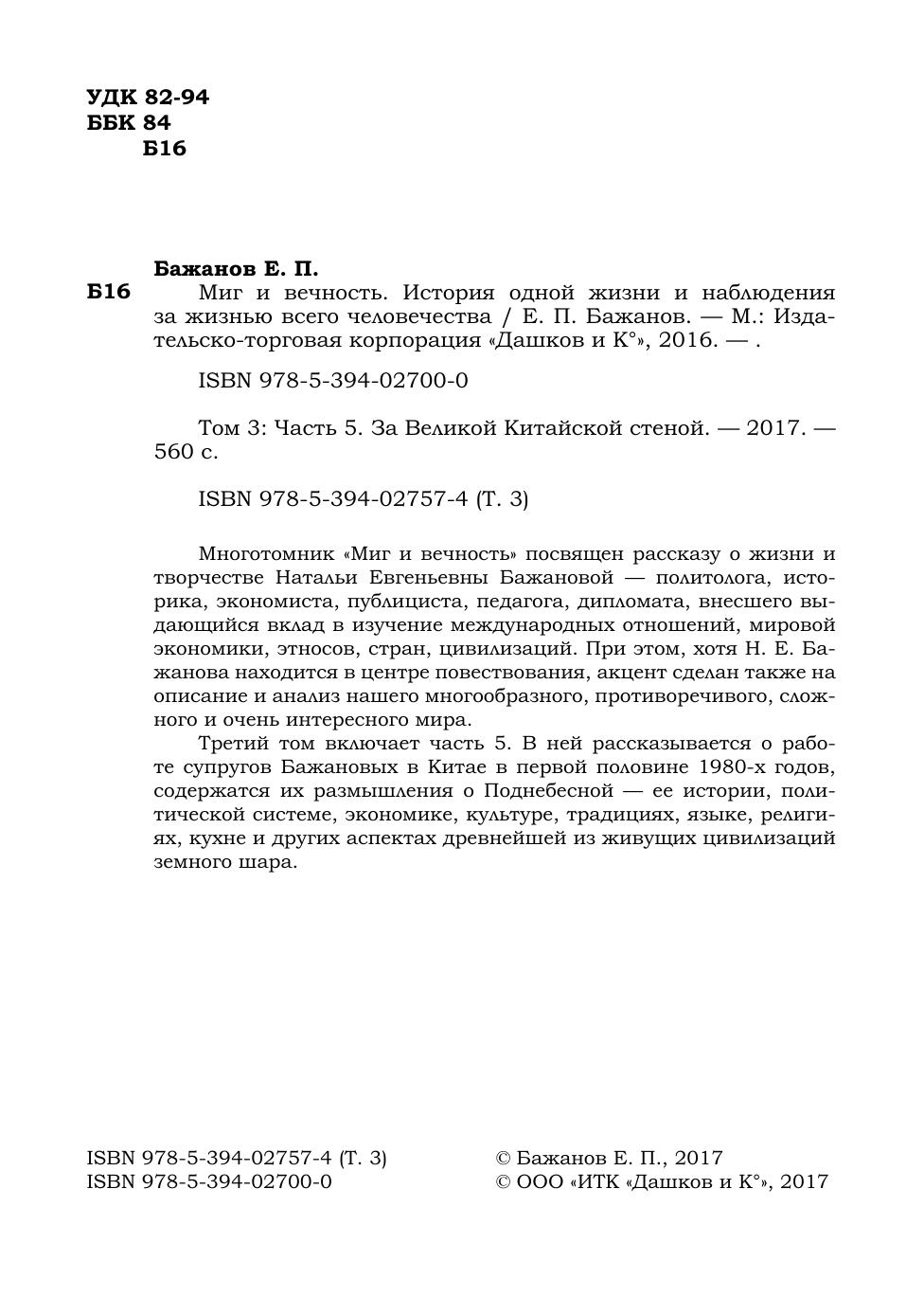 Третий том включает часть 5. В ней рассказывается о работе супругов Бажановых в Китае в первой половине 1980-х годов, содержатся их размышления о Поднебесной — ее истории, политической системе, экономике, культуре, традициях, языке, религиях, кухне и других аспектах древнейшей из живущих цивилизаций земного шара