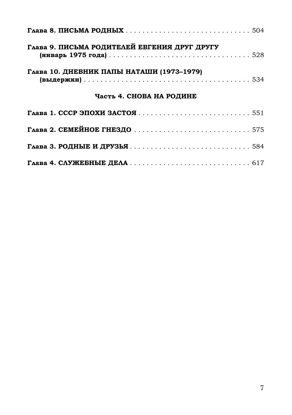Часть 4 повествует о возвращении Бажановых из-за океана на Родину и их обитание в Москве в 1979-1982 годах. Наташа возобновила работу в Институте востоковедения АН СССР, а Евгений учился в Дипломатической академии МИД СССР. Одновременно молодая чета с помощью родных и близких обустраивала свое семейное гнездо в непростых условиях тотального товарного дефицита и других изъянов системы "развитого социализма". Дана широкая панорама жизни в СССР и советской внешней политики.