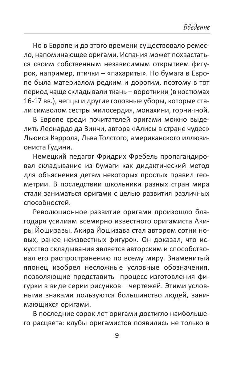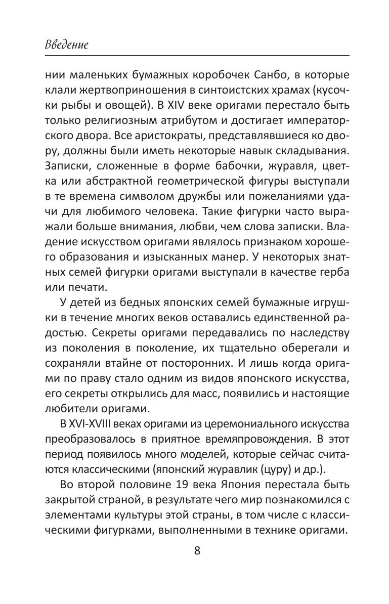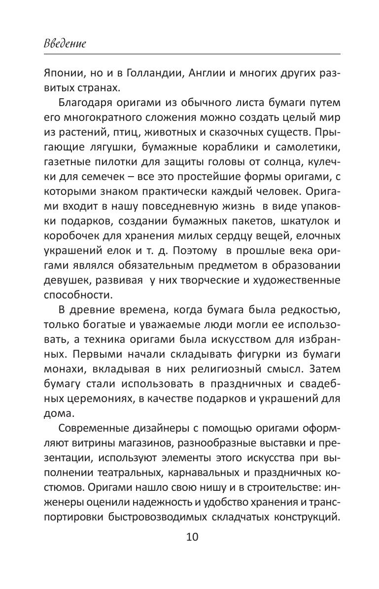 Одним из самых доступных материалов для изобретений является бумага. Оживая в ваших руках, она превращается в настоящее произведение искусства, открывая возможности для развития творческой натуры. Одним из искусств бумажных преобразований является оригами — когда из обычного листа бумаги путем его многократного сложения можно создать целый мир из растений, птиц, животных и сказочных существ. Прыгающие лягушки, бумажные кораблики и самолетики, газетные пилотки для защиты головы от солнца, кулечки для семечек — все это простейшие формы оригами, с которыми знаком практически каждый человек. Оригами входит в нашу повседневную жизнь в виде упаковки подарков, бумажных пакетов, шкатулок и коробочек для хранения милых сердцу вещей, украшений для елок и сервировки стола салфетками. Поэтому в прошлые века оригами являлся обязательным предметом в образовании девушек, развивая у них творческие и художественные способности.