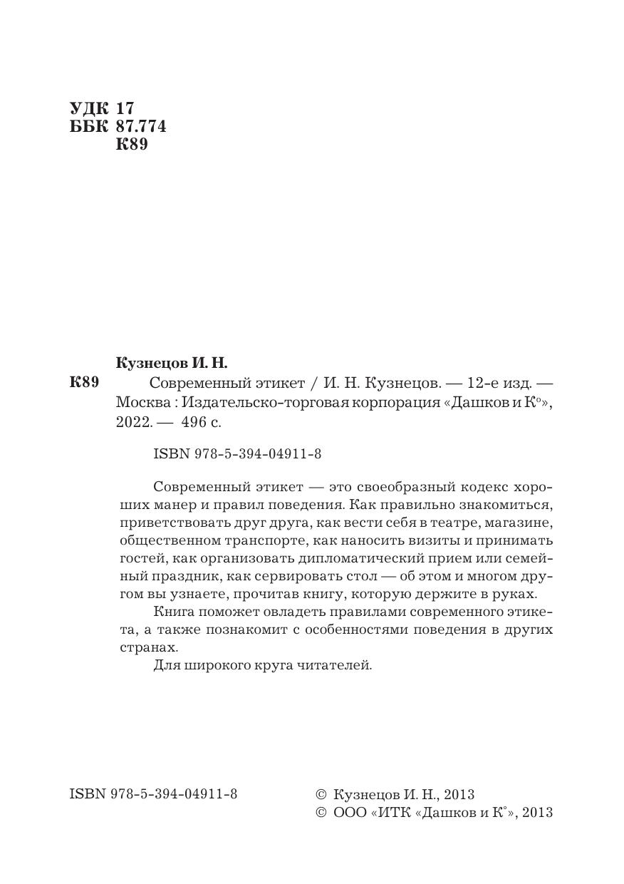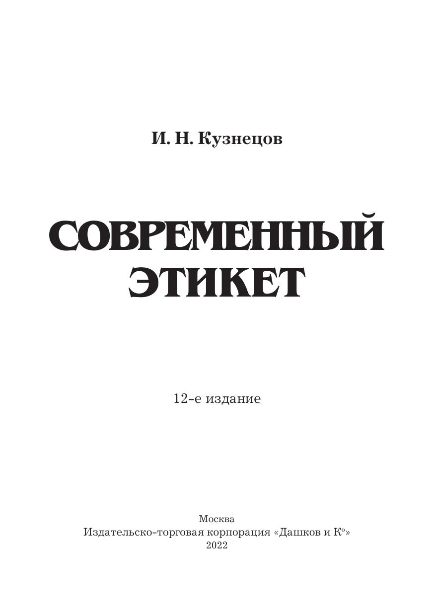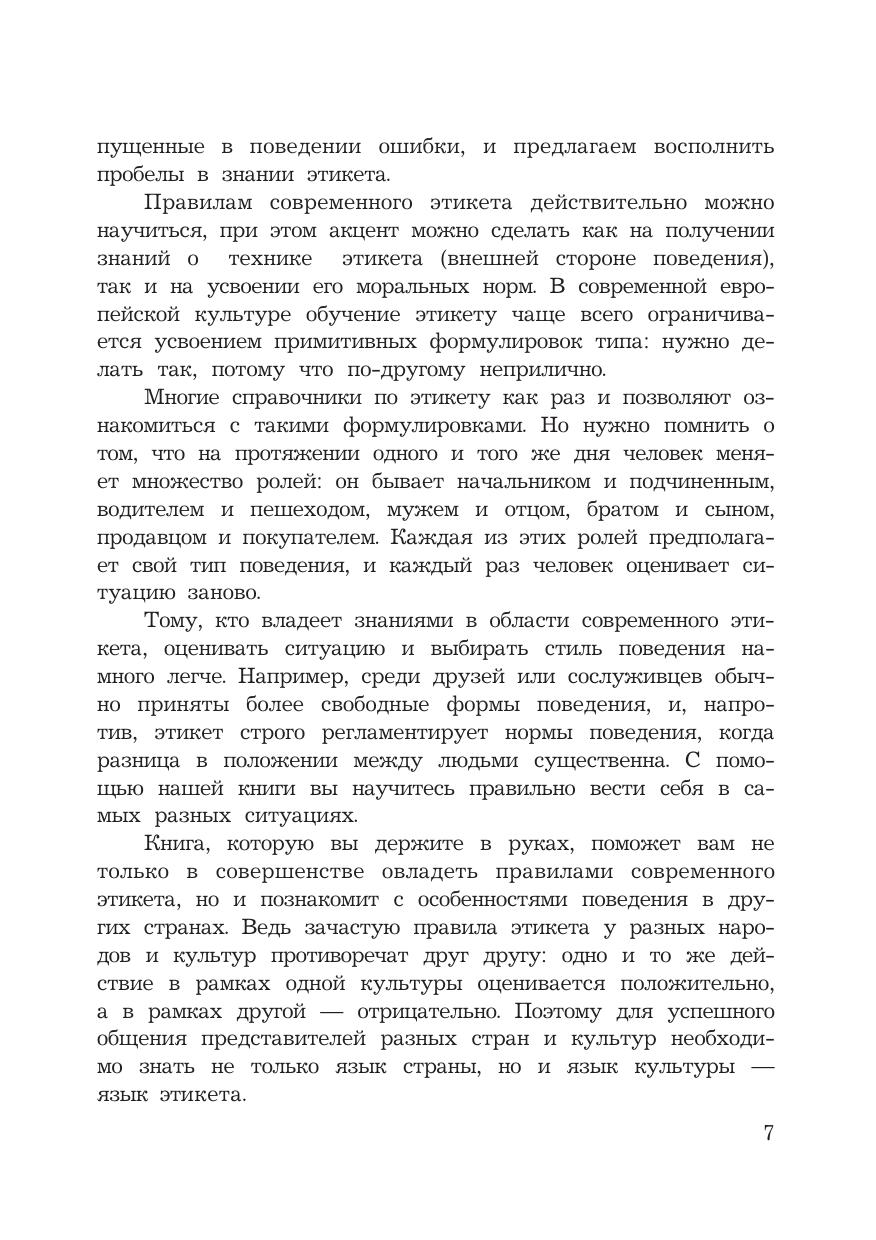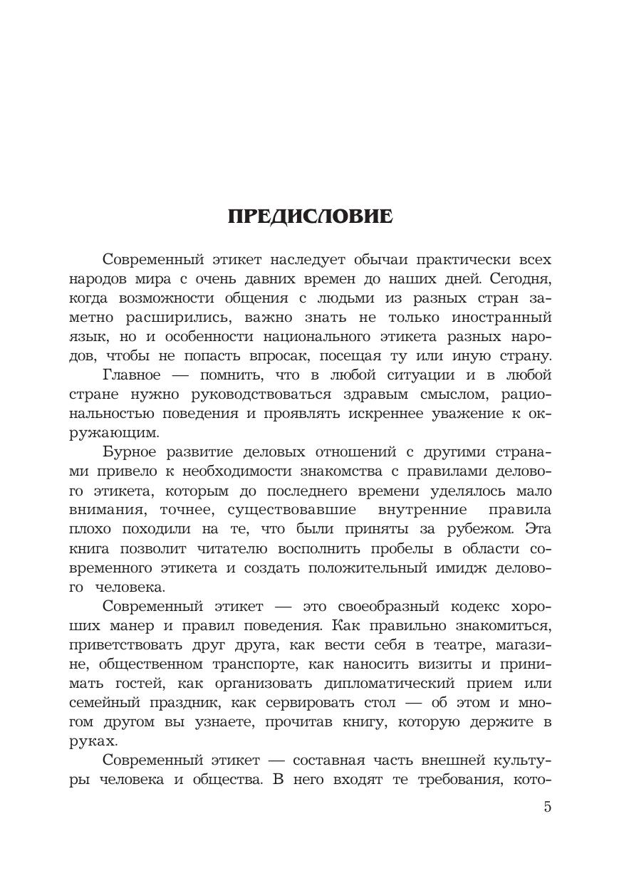 Современный этикет - это своеобразный кодекс хороших манер и правил поведения. Как правильно знакомиться, приветствовать друг друга, как вести себя в театре, магазине, общественном транспорте, как наносить визиты и принимать гостей, как организовать дипломатический прием или семейный праздник, как сервировать стол - об этом и многом другом вы узнаете, прочитав эту книгу. Книга поможет овладеть правилами современного этикета, а также познакомит с особенностями поведения в других странах. Для широкого круга читателей.