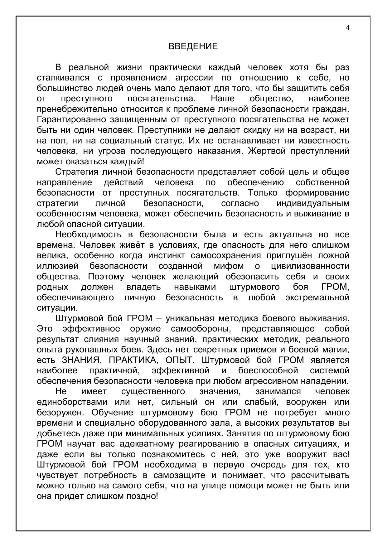 Штурмовой бой ГРОМ – эффективное оружие самообороны, где нет секретных приемов и боевой магии, а есть только ЗНАНИЯ, ПРАКТИКА, ОПЫТ. Штурмовой бой ГРОМ является наиболее практичной, эффективной и боеспособной системой обеспечения безопасности человека при любом агрессивном нападении.