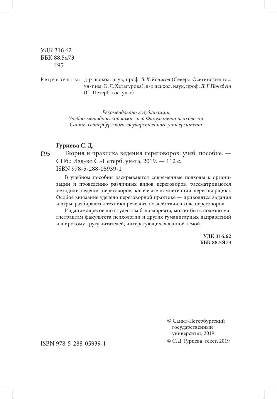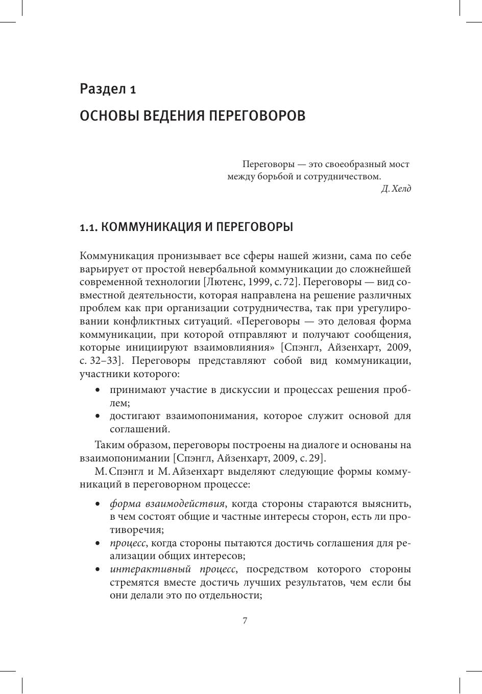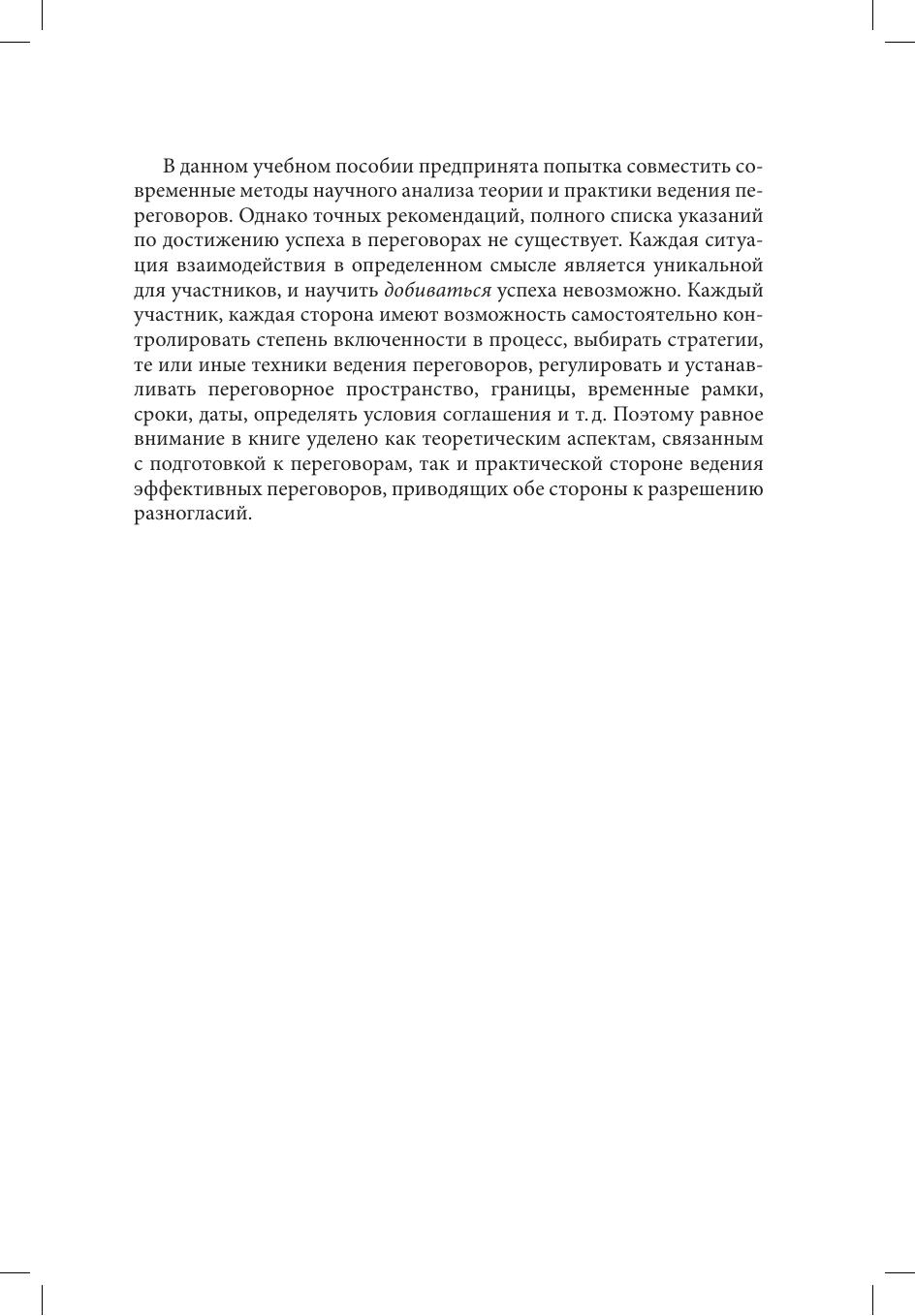 В учебном пособии раскрываются современные подходы к организации и проведению различных видов переговоров, рассматриваются методики ведения переговоров, ключевые компетенции переговорщика. Особое внимание уделено переговорной практике - приводятся задания и игры, разбираются техники речевого воздействия в ходе переговоров.