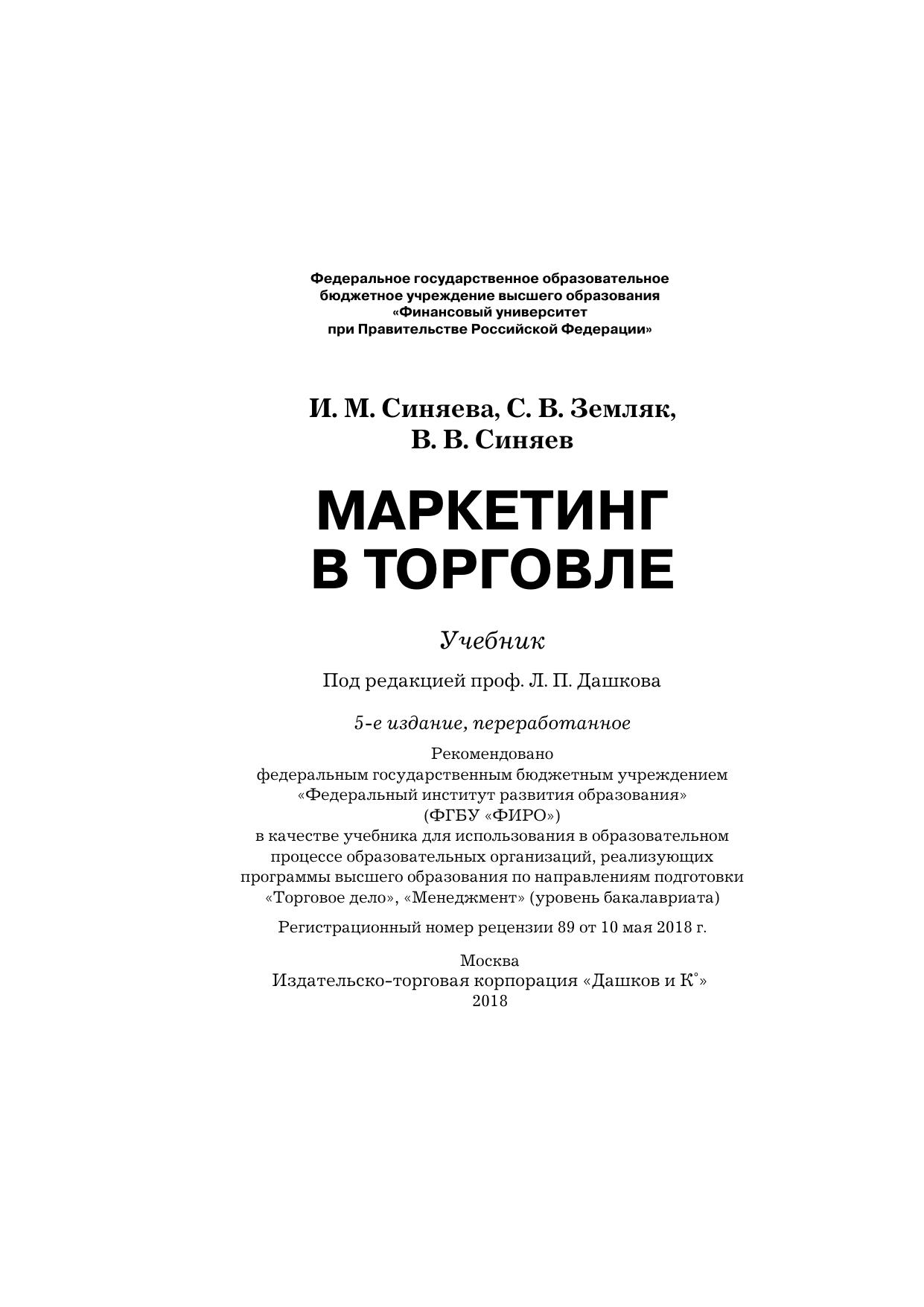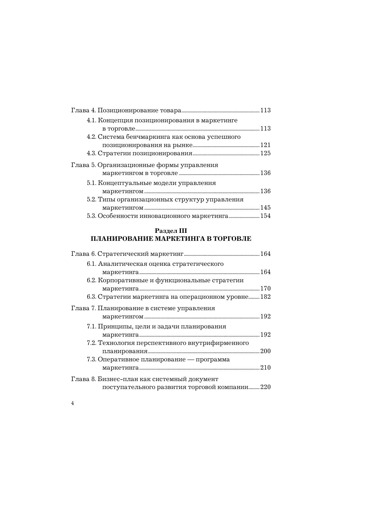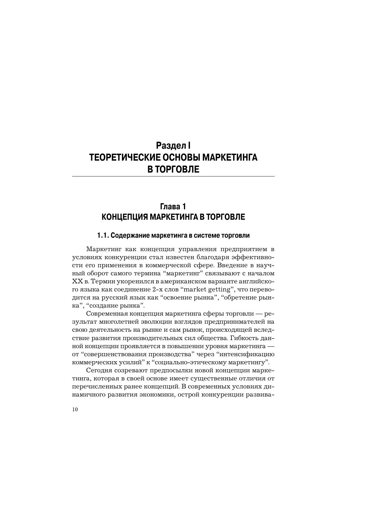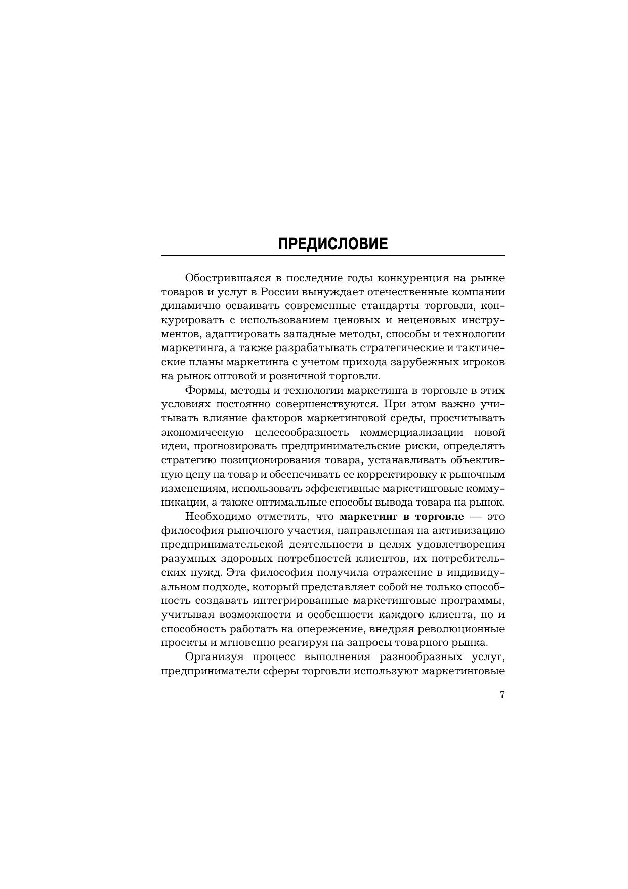 В учебнике раскрываются теоретические аспекты, механизм управления и планирования маркетинга в торговле. Особое внимание уделено характеристике маркетинговых технологий в торговле и методов оценки эффективности их использования. Важно, что в учебнике приведены конкретные алгоритмы расчетов, аналитические таблицы, маркетинговые матрицы, рисунки, графики на примерах организации маркетинга в торговле. Для студентов бакалавриата, обучающихся по направлениям подготовки «Торговое дело» и «Менеджмент», преподавателей экономических направлений подготовки вузов, научных работников, исследующих проблемы маркетинга в торговле, а также менеджеров различных коммерческих структур.