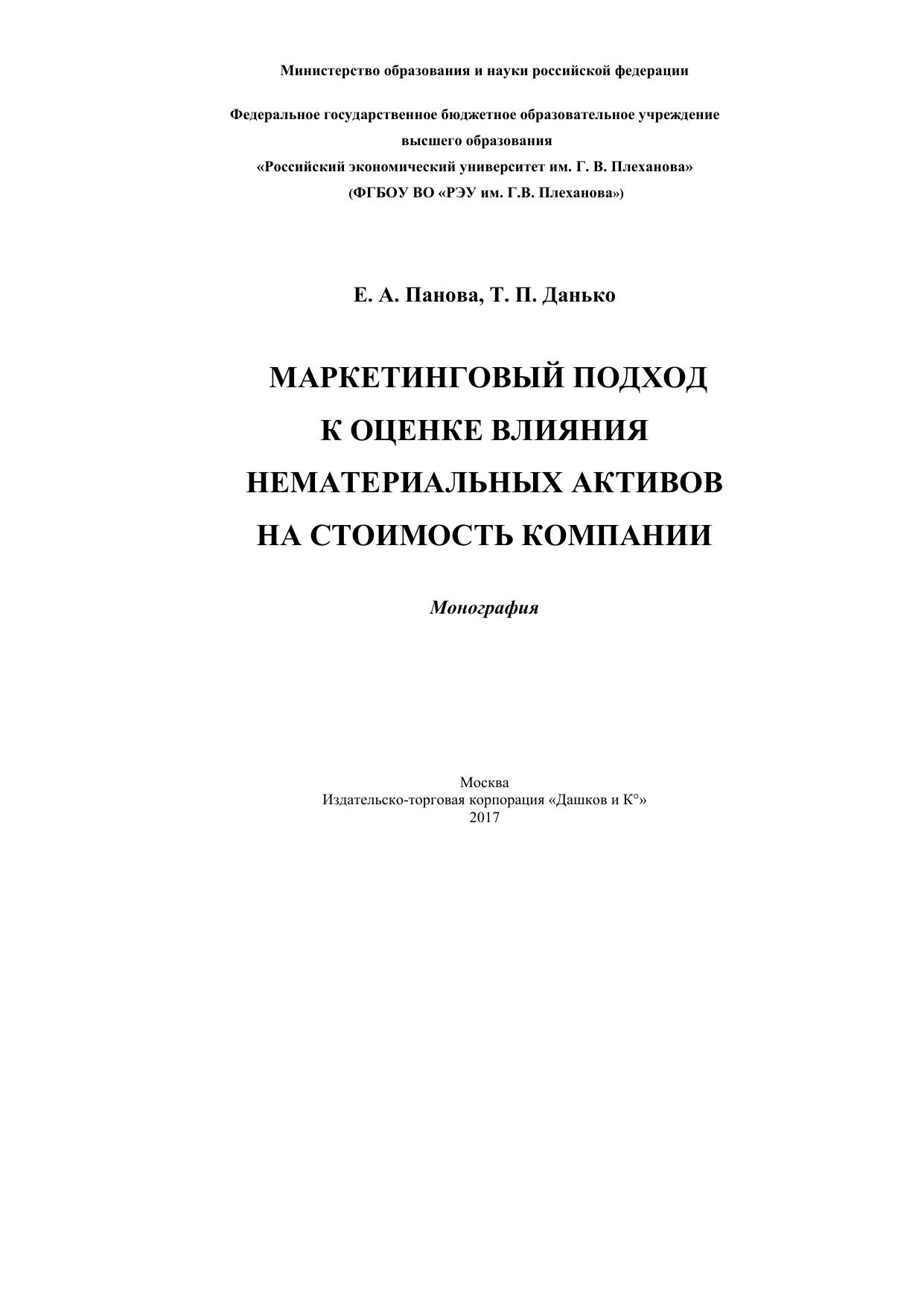 Маркетинговый подход к оценке влияния нематериальных активов на стоимость компании: монография