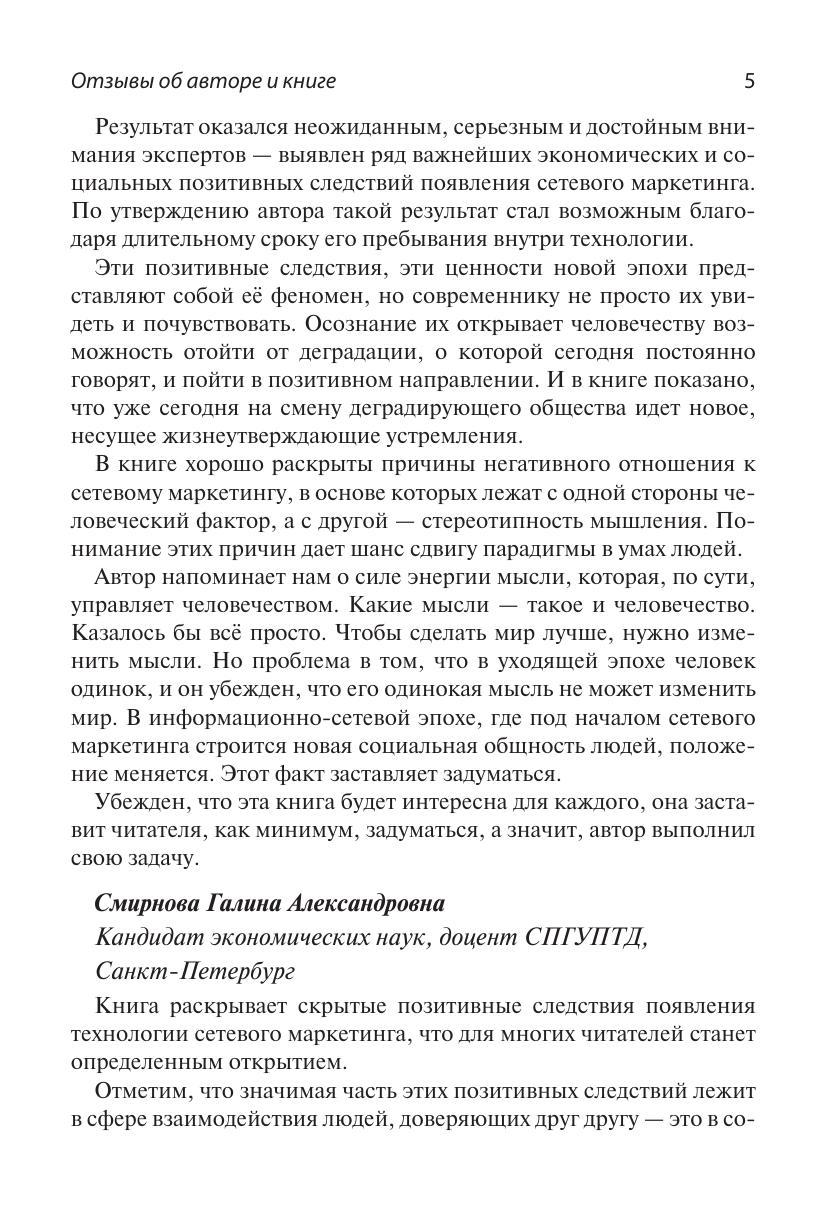 В книге представлено научно-популярное изложение результатов исследования технологии сетевого маркетинга с позиции его влияния на современный мир. В основе исследований, которые начались в 2006 году, лежит личный опыт построения предпринимательства в сетевом маркетинге и анализ общедоступной информации о работе различных компаний в данной области. Материал показан на стыке наук — истории, технологии, экономики, философии и этики, и предназначен как для специалистов, так и для широкого круга читателей. Когда шла работа по выбору названия, то было рассмотрено много вариантов. На наш взгляд, все эти названия вместе стремятся ответить на неожиданный вопрос об актуальности СЕТЕВОГО МАРКЕТИНГА: почему же вдруг, с чего бы это растет его актуальность? Поэтому решено здесь и сейчас представить читателю некоторые из них:
