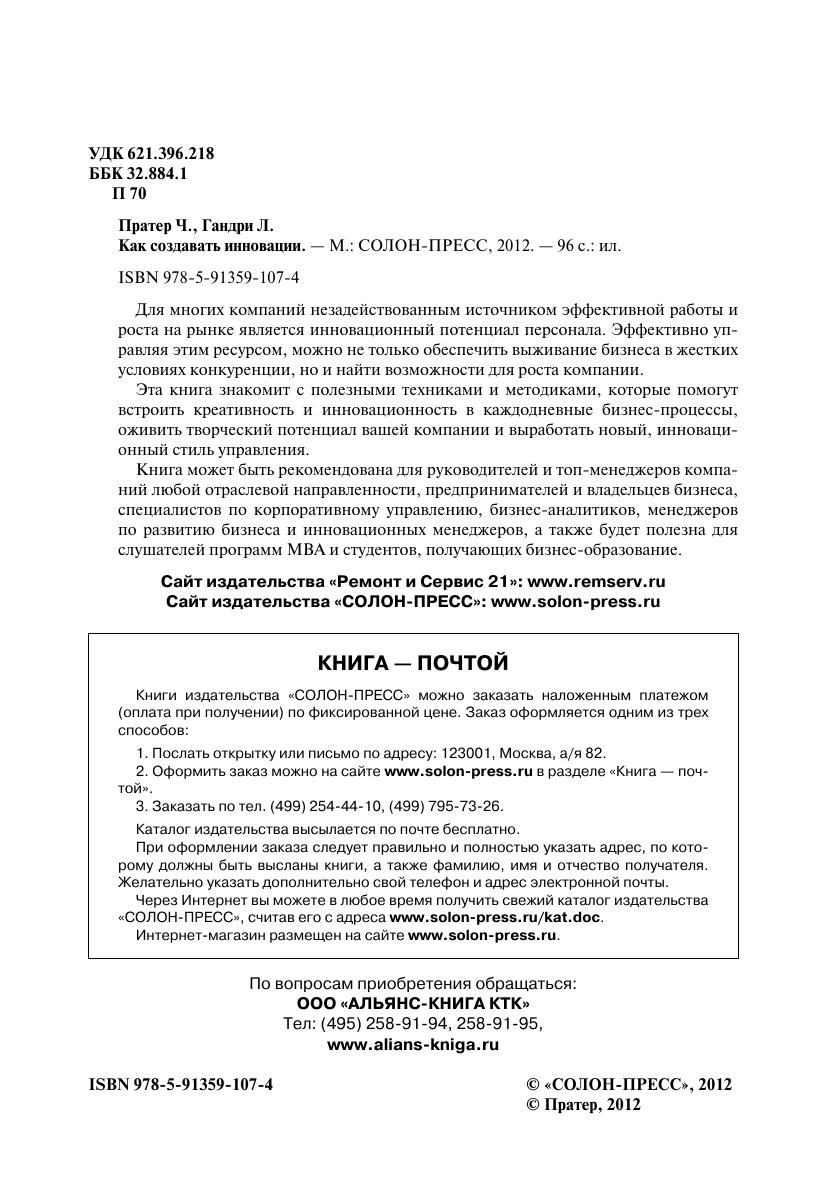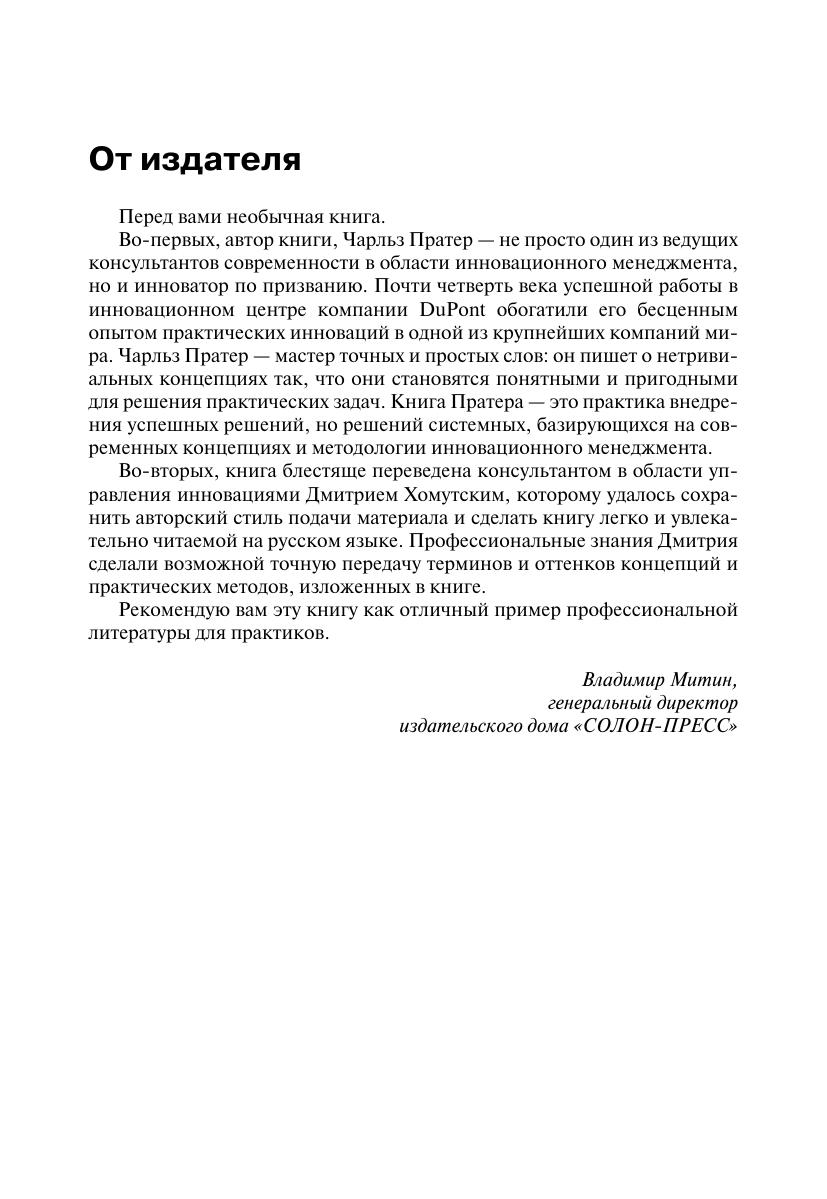 Для многих компаний незадействованным источником эффективной работы и роста на рынке является инновационный потенциал персонала. Эффективно управляя этим ресурсом, можно не только обеспечить выживание бизнеса в жестких условиях конкуренции, но и найти возможности для роста компании. Эта книга знакомит с полезными техниками и методиками, которые помогут встроить креативность и инновационность в каждодневные бизнес-процессы, оживить творческий потенциал вашей компании и выработать новый, инновационный стиль управления. Книга может быть рекомендована для руководителей и топ-менеджеров компаний любой отраслевой направленности, предпринимателей и владельцев бизнеса, специалистов по корпоративному управлению, бизнес-аналитиков, менеджеров по развитию бизнеса и инновационных менеджеров, а также будет полезна для слушателей программ МВА и студентов, получающих бизнес-образование.