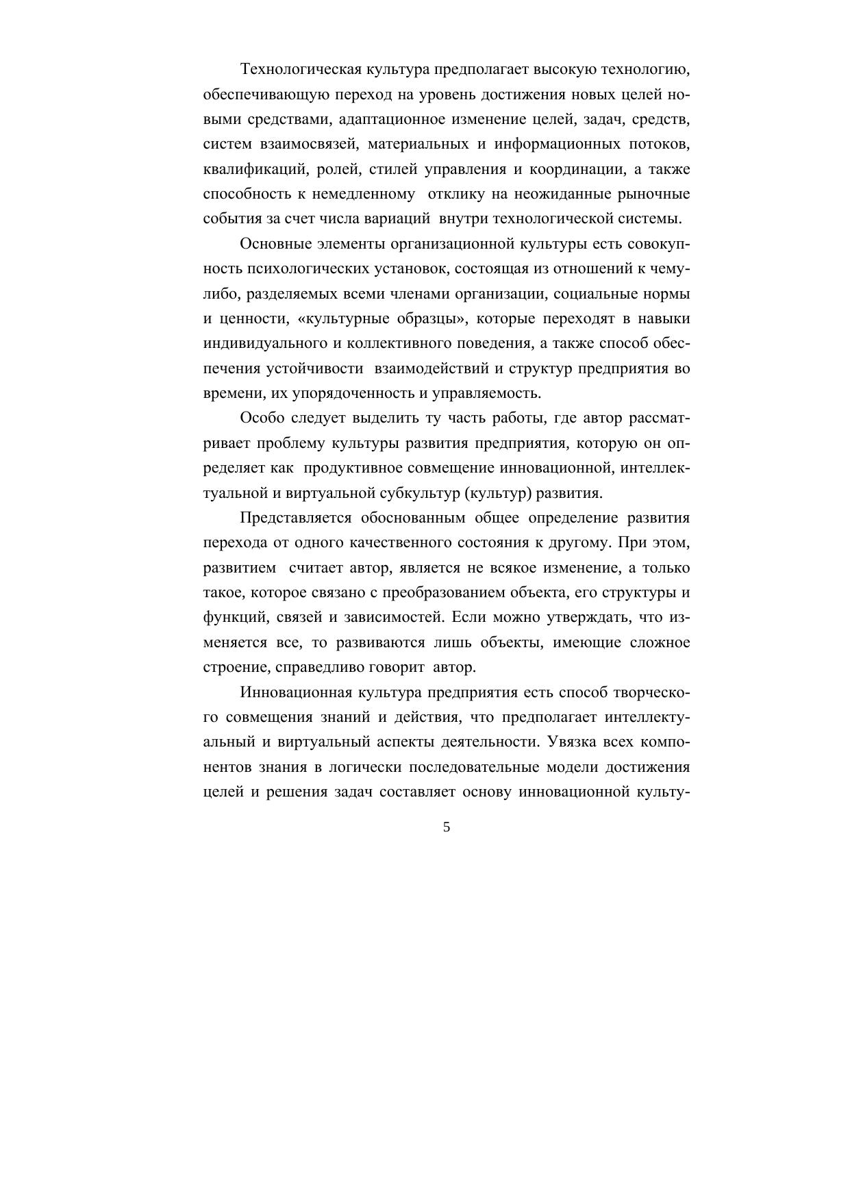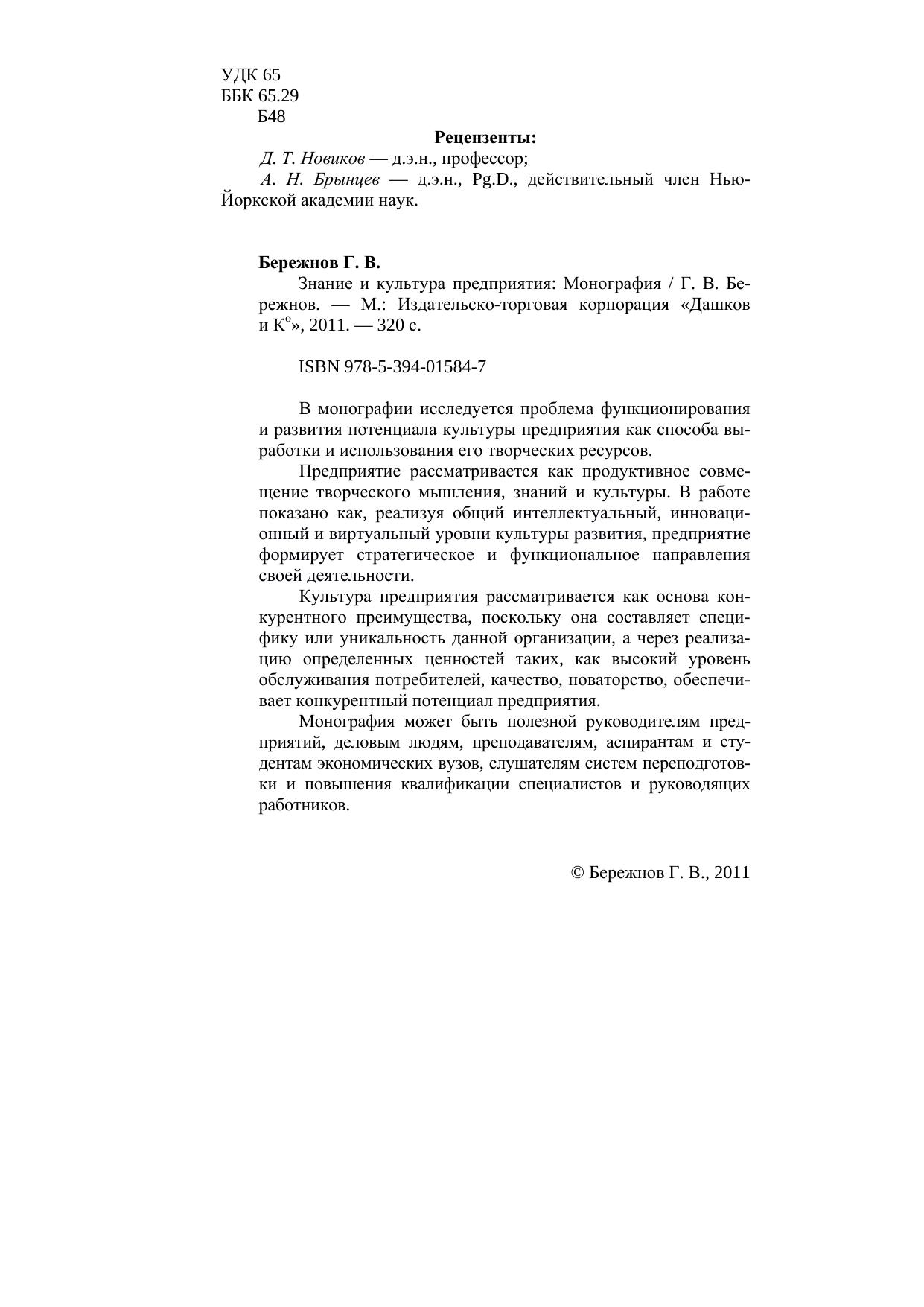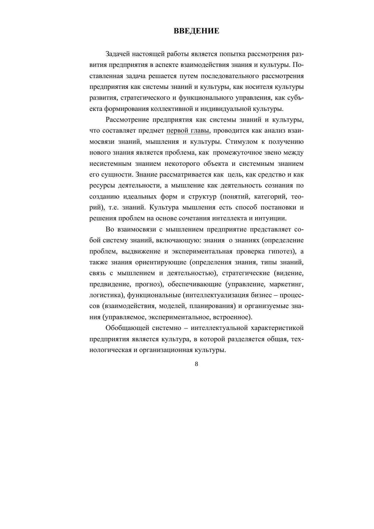 В монографии исследуется проблема функционирования и развития потенциала культуры предприятия как способа выработки и использования его творческих ресурсов. Предприятие рассматривается как продуктивное совмещение творческого мышления, знаний и культуры. В работе показано как, реализуя общий интеллектуальный, инновационный и виртуальный уровни культуры развития, предприятие формирует стратегическое и функциональное направления