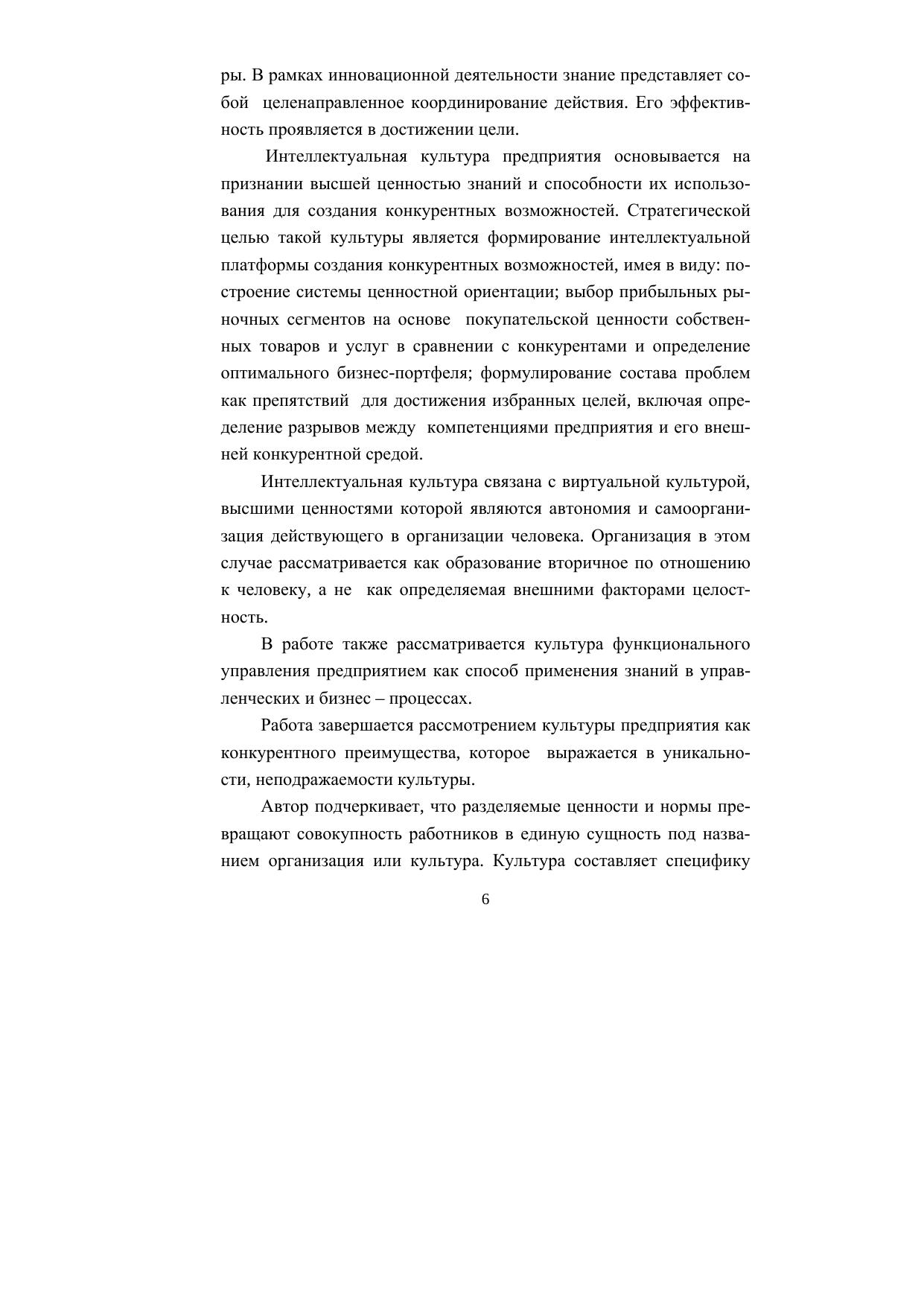 своей деятельности. Культура предприятия рассматривается как основа конкурентного преимущества, поскольку она составляет специфику или уникальность данной организации, а через реализацию определенных ценностей таких, как высокий уровень обслуживания потребителей, качество, новаторство, обеспечивает конкурентный потенциал предприятия.