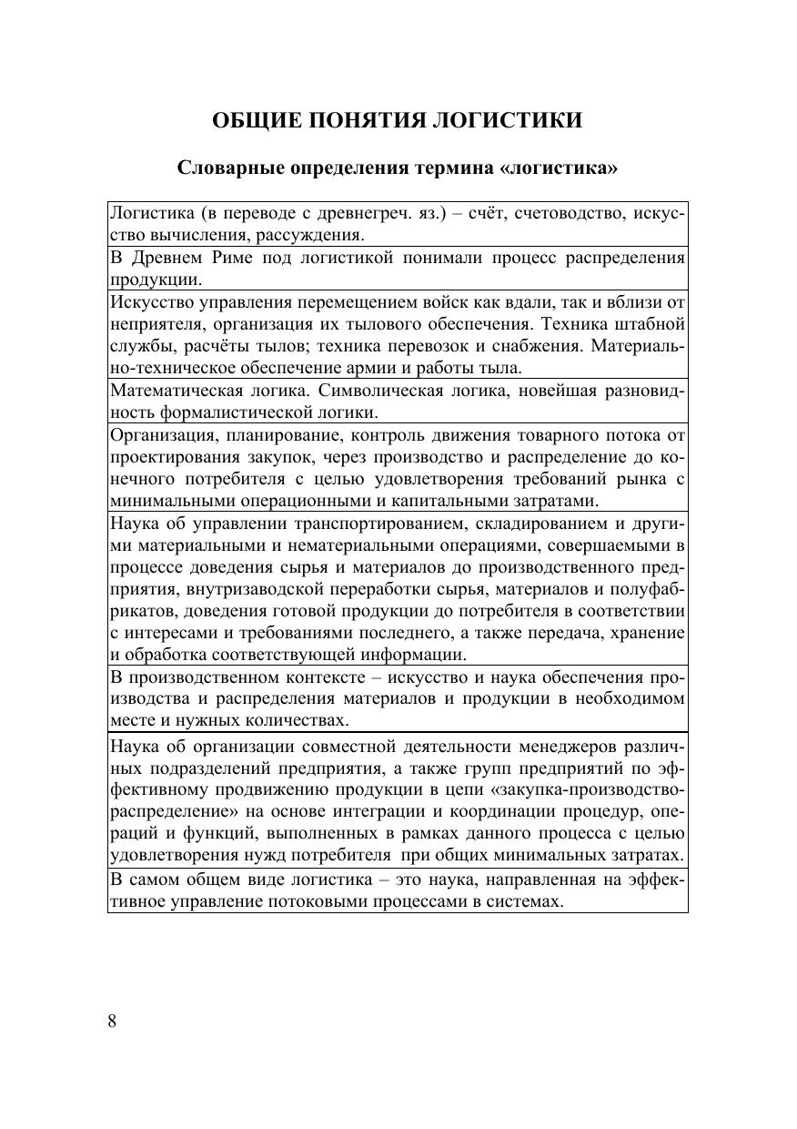 Опорный материал к курсу лекций «Логистика» (в схемах, таблицах, определениях)