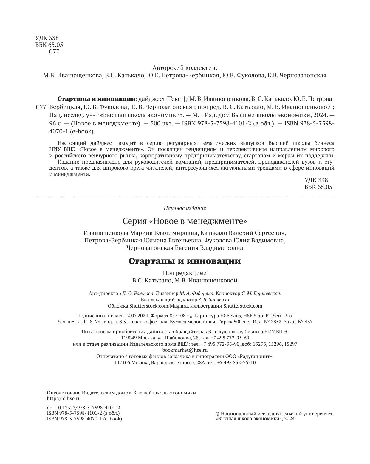 Стартапы и инновации: дайджест Иванющенкова М. В., Катькало В. С., Петрова-Вербицкая Ю. Е., Фуколова Ю. В., Чернозатонская Е. В.