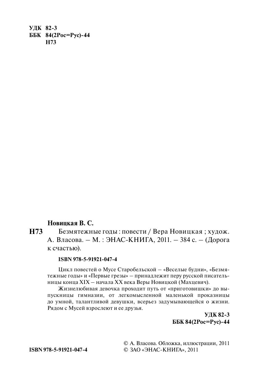 Цикл повестей о Мусе Старобельской – «Веселые будни», «Безмятежные годы» и «Первые грезы» – принадлежит перу русской писательницы конца XIX – начала ХХ века Веры Новицкой (Махцевич). Жизнелюбивая девочка проходит путь от «приготовишки» до выпускницы гимназии, от легкомысленной маленькой проказницы до умной, талантливой девушки, всерьез задумывающейся о жизни. Рядом с Мусей взрослеют и ее друзья.
