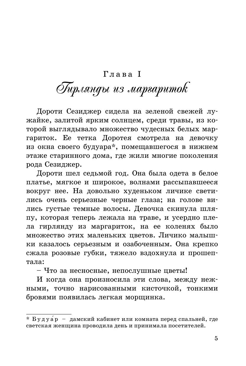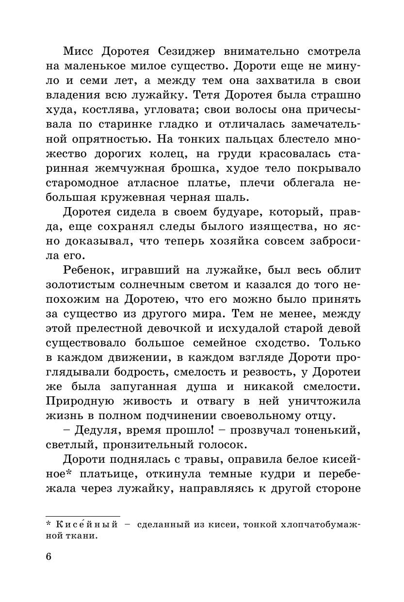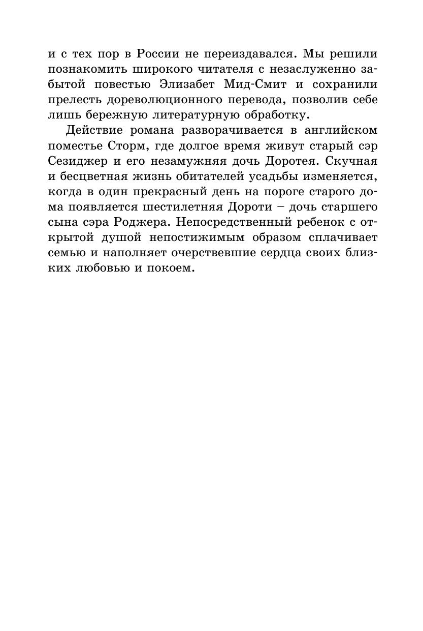 Всю свою долгую жизнь сэр Роджер Сезиджер посвятил накоплению богатств. Деньги всегда были единственным, что радовало его скупое сердце. Но вот в старой усадьбе неожиданно появляется его осиротевшая внучка – маленькая Дороти. Сможет ли непосредственная и любящая малышка возродить омертвевшую душу старого скряги? Для детей среднего школьного возраста.