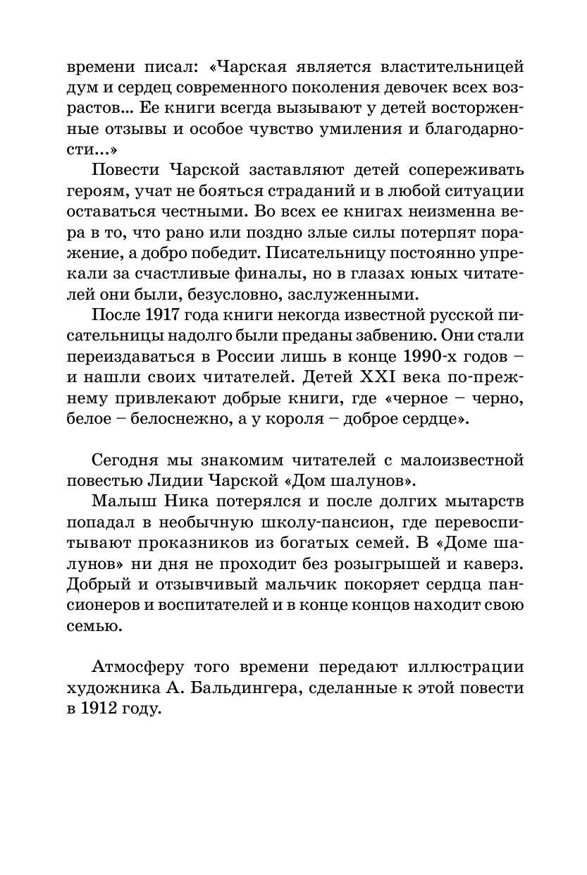 Малыш Ника потерялся и после долгих мытарств попал в «Дом шалунов» – необычную школу-пансион, где перевоспитывают проказников из богатых семей. Здесь ни дня не проходит без розыгрышей и каверз юных воспитанников. Добрый и отзывчивый мальчик покоряет сердца пансионеров и воспитателей и в конце концов находит свою семью. Для среднего школьного возраста.