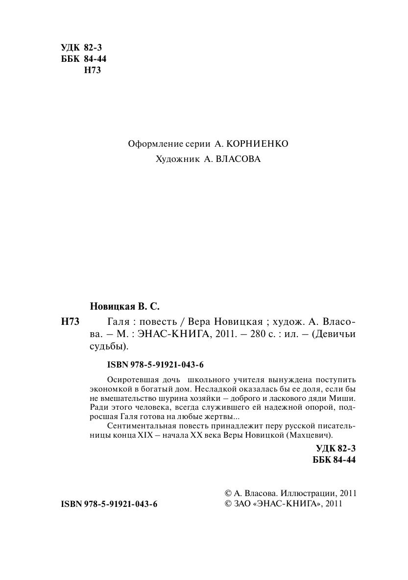 Осиротевшая дочь школьного учителя вынуждена поступить экономкой в богатый дом. Несладкой оказалась бы ее доля, если бы не вмешательство шурина хозяйки – доброго и ласкового дяди Миши. Ради этого человека, всегда служившего ей надежной опорой, подросшая Галя готова на любые жертвы… Сентиментальная повесть принадлежит перу русской писательницы конца XIX – начала ХХ века Веры Новицкой (Махцевич).