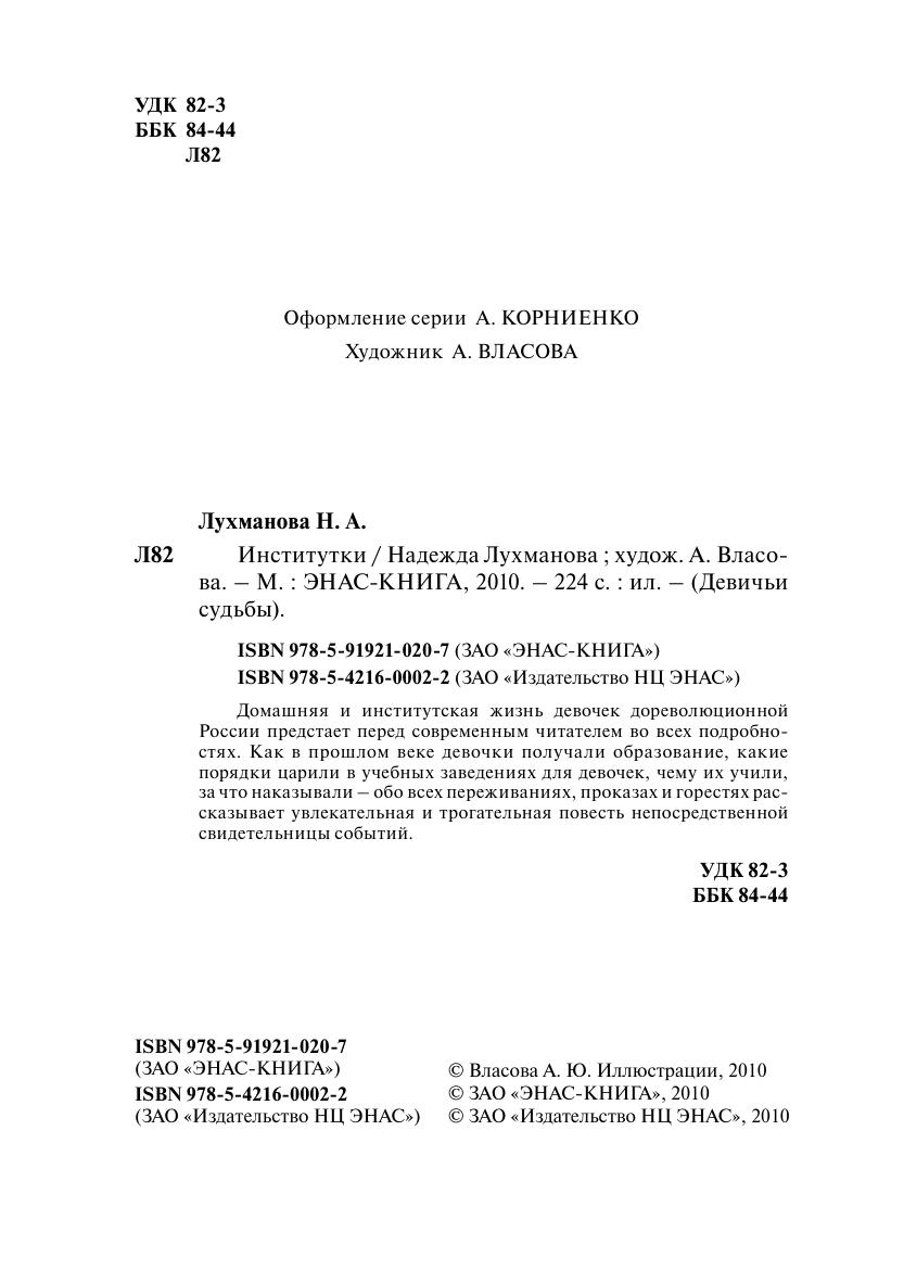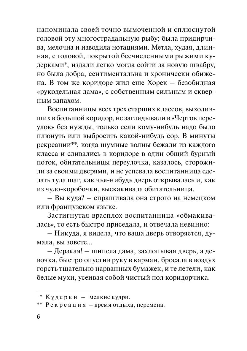 Домашняя и институтская жизнь девочек дореволюционной России предстает перед современным читателем во всех подробностях. Как в прошлом веке девочки получали образование, какие порядки царили в учебных заведениях для девочек, чему их учили, за что наказывали – обо всех переживаниях, проказах и горестях рассказывает увлекательная и трогательная повесть непосредственной свидетельницы событий.