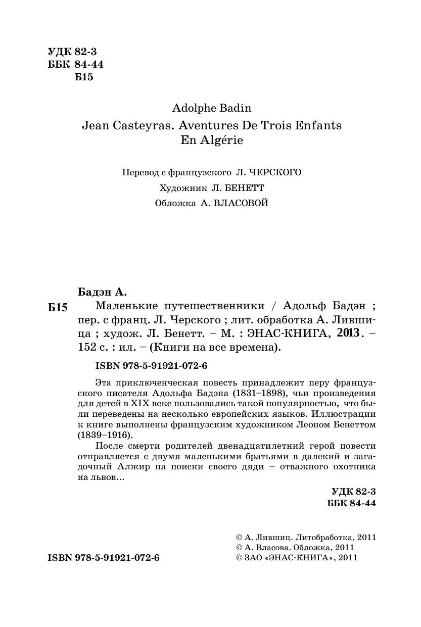 Эта приключенческая повесть принадлежит перу французского писателя Адольфа Бадэна (1831–1898), чьи произведения для детей в XIX веке пользовались такой популярностью, что были переведены на несколько европейских языков. Иллюстрации к книге выполнены французским художником Леоном Бенеттом (1839–1916). После смерти родителей двенадцатилетний герой повести отправляется с двумя маленькими братьями в далекий и загадочный Алжир на поиски своего дяди – отважного охотника на львов...