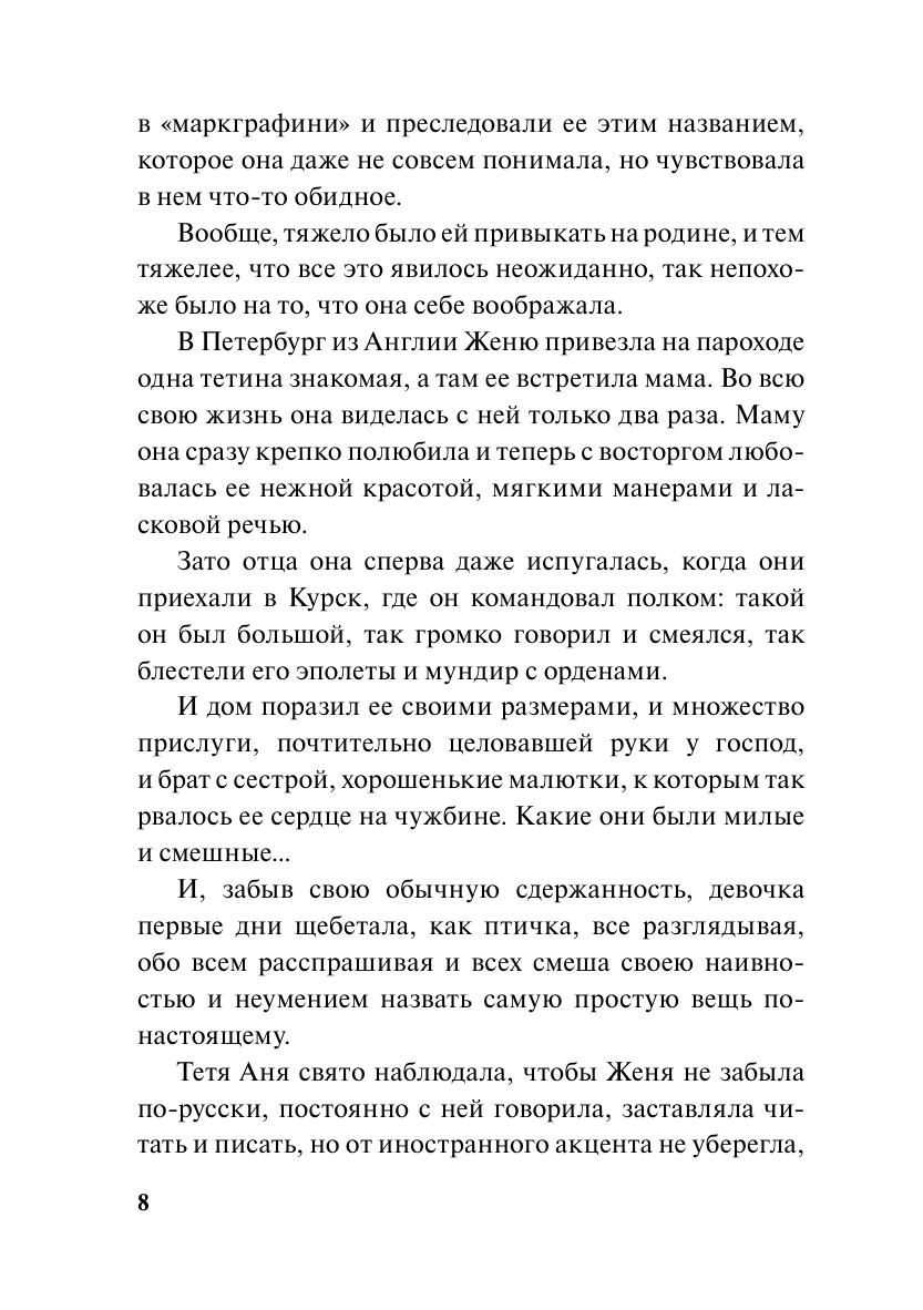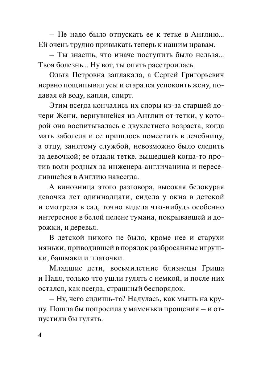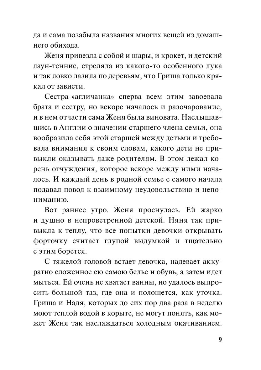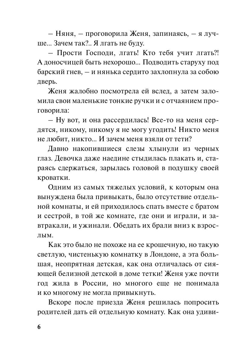 Тринадцатилетняя Женя воспитывалась у тети в Англии. Возвращение в Россию, в родную семью, производит на девочку сильное впечатление: крепостные устои удивляют и ужасают ее. В свою очередь «иноземные» привычки девочки и ее либеральные взгляды непонятны ее родным и служат причиной многих конфликтов. Женя оказывается чужой в собственном доме. Немало горьких обид и невзгод выпадет на долю девочки, прежде чем она сумеет найти дорогу к сердцам своих близких…Автор повести – русская писательница Елена Дмитриевна Ильина-Пожарская (1851–1916).