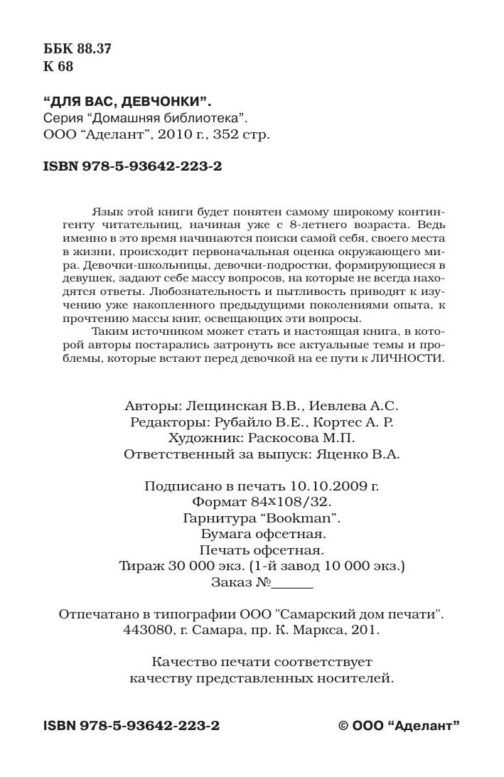 Таким источником может стать и настоящая книга, в которой авторы постарались затронуть все актуальные темы и проблемы, которые встают перед девочкой на ее пути к ЛИЧНОСТИ.