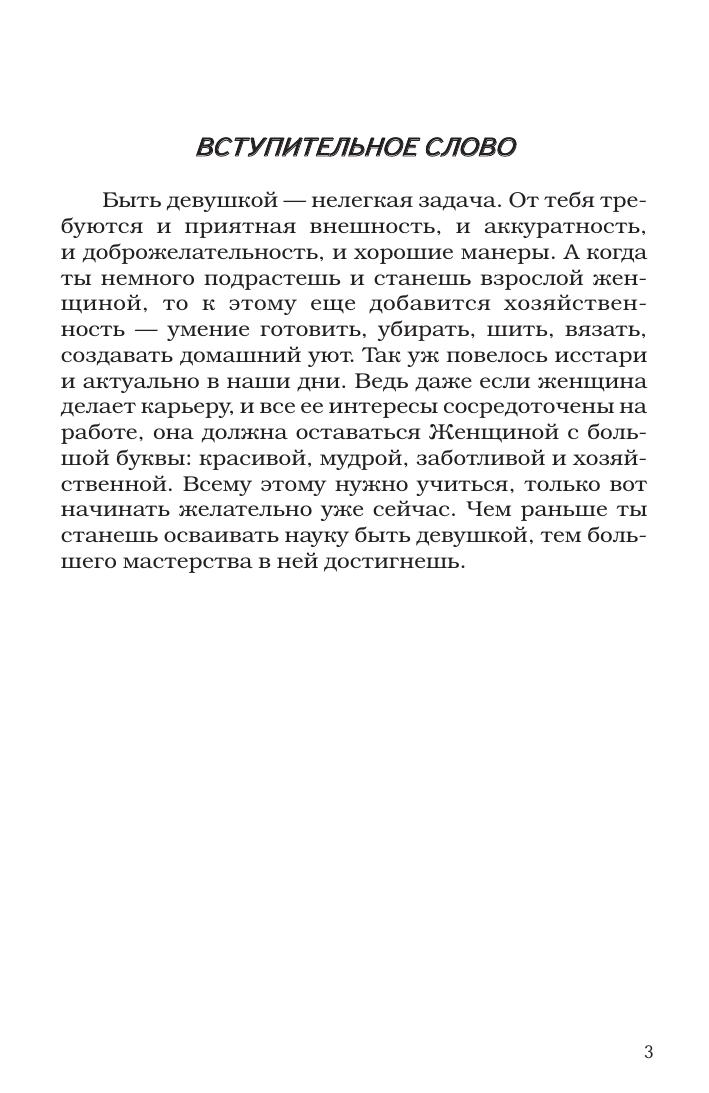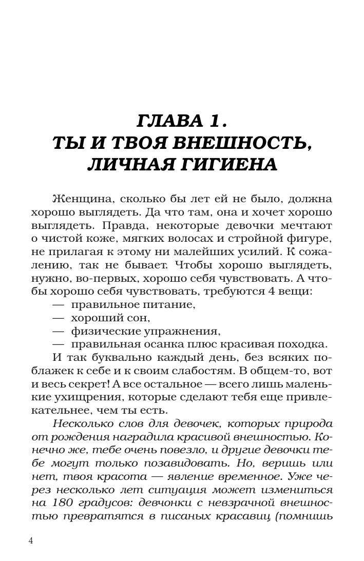 Язык этой книги будет понятен самому широкому контингенту читательниц, начиная уже с 8-летнего возраста. Ведь именно в это время начинаются поиски самой себя, своего места в жизни, происходит первоначальная оценка окружающего мира. Девочки-школьницы, девочки-подростки, формирующиеся в девушек, задают себе массу вопросов, на которые не всегда находятся ответы. Любознательность и пытливость приводят к изучению уже накопленного предыдущими поколениями опыта, к прочтению массы книг, освещающих эти вопросы.