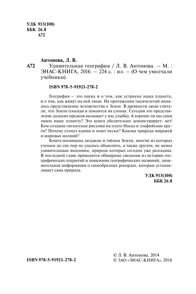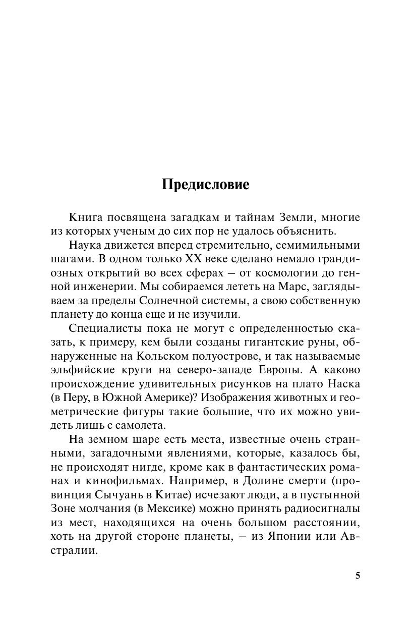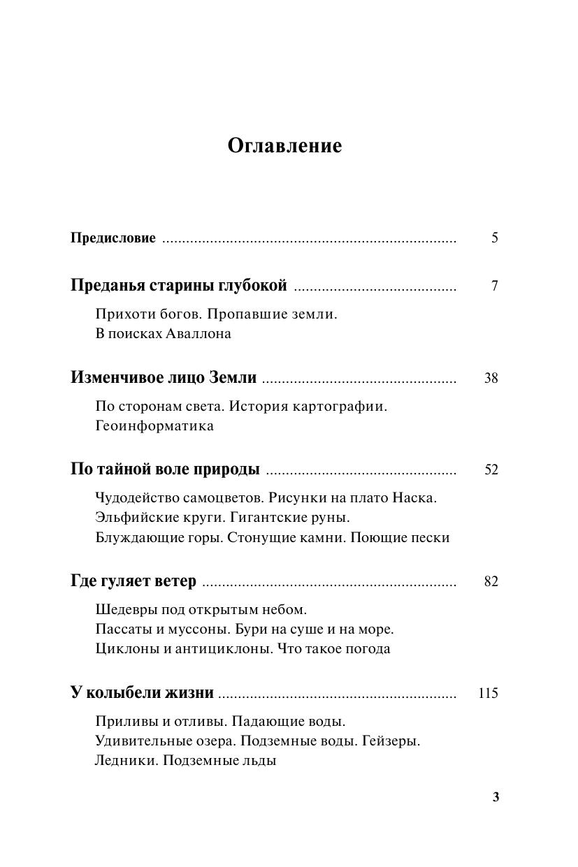 География – это наука и о том, как устроена наша планета, и о том, как живут на ней люди. На протяжении тысячелетий менялось представление человечества о Земле. В древности люди считали, что Земля плоская и покоится на слонах. Сегодня это представление далеких предков вызывает у нас улыбку. А хорошо ли мы сами знаем нашу планету? Эта кни га убедительно демонстрирует: нет! Кем созданы гигантские рисунки на плато Наска и эльфийские круги? Почему стонут камни и поют пески? Какова природа миражей и шаровых молний? Книга посвящена загадкам и тайнам Земли, многие из которых ученым до сих пор не удалось объяснить, а также другим, не менее удивительным явлениям, природа которых сегодня уже разгадана. В последней главе приводятся обширные сведения из истории гео графических открытий и появления географических названий, занимательная информация о своеобразных рекордах, которые устанавливает сама природа.