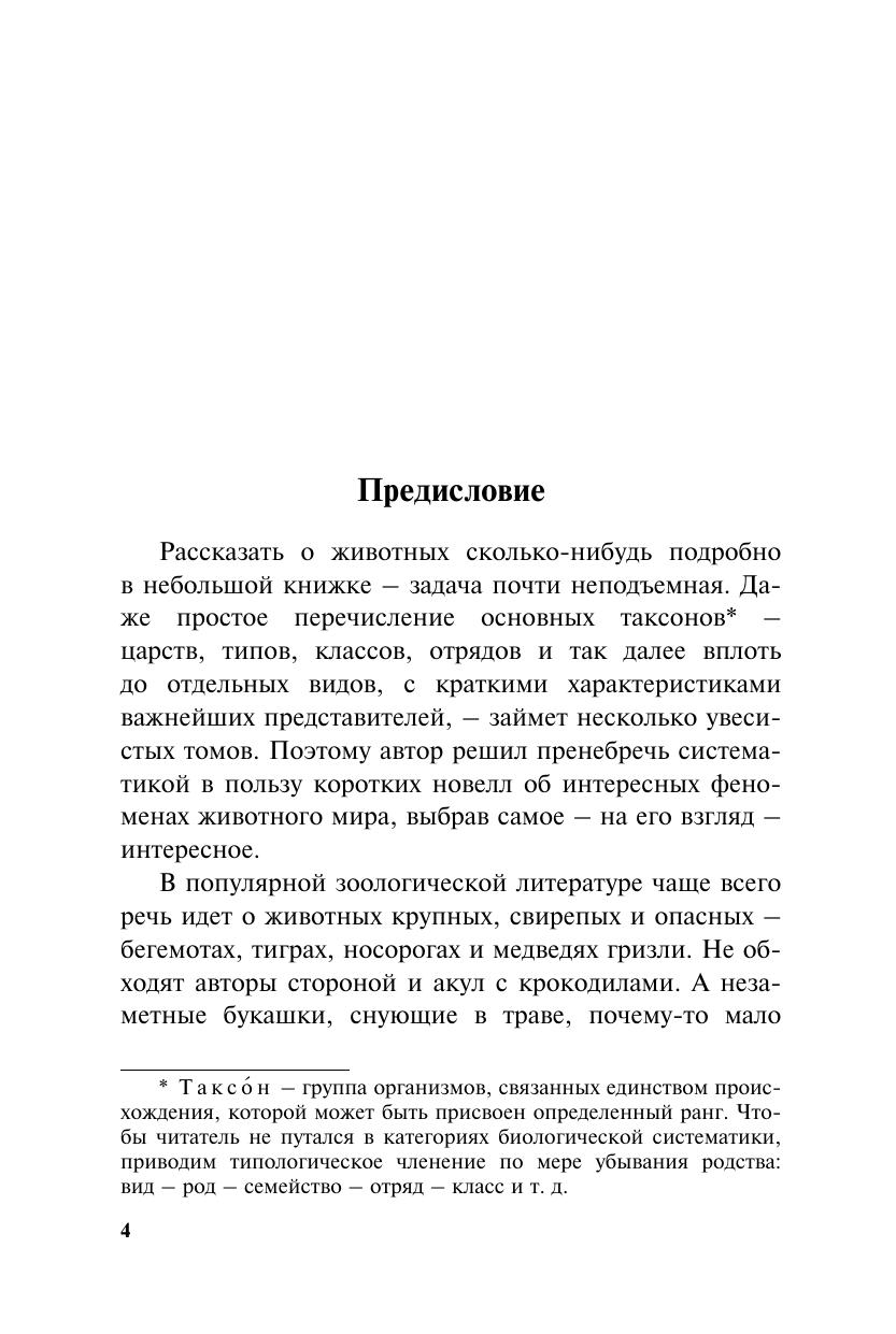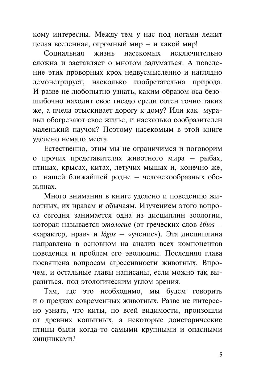 Книга посвящена наиболее интересным феноменам животного мира. Она рассказывает о быстрокрылых стрекозах и умных муравьях, о термитах-строителях и пчелах-танцовщицах, заботливых синицах и сообразительных крысах, о трогательных ленивцах и полных достоинства обезьянах. Читатель узнает о том, что киты, по всей видимости, произошли от древних копытных, а некоторые доисторические птицы были когда-то самыми крупными и опасными хищниками. Особое внимание уделено автором вопросам этологии – науки, которая изучает нравы и обычаи животных. Книга доставит немало приятных минут всем тем, кто интересуется биологией и разнообразием жизни на нашей планете