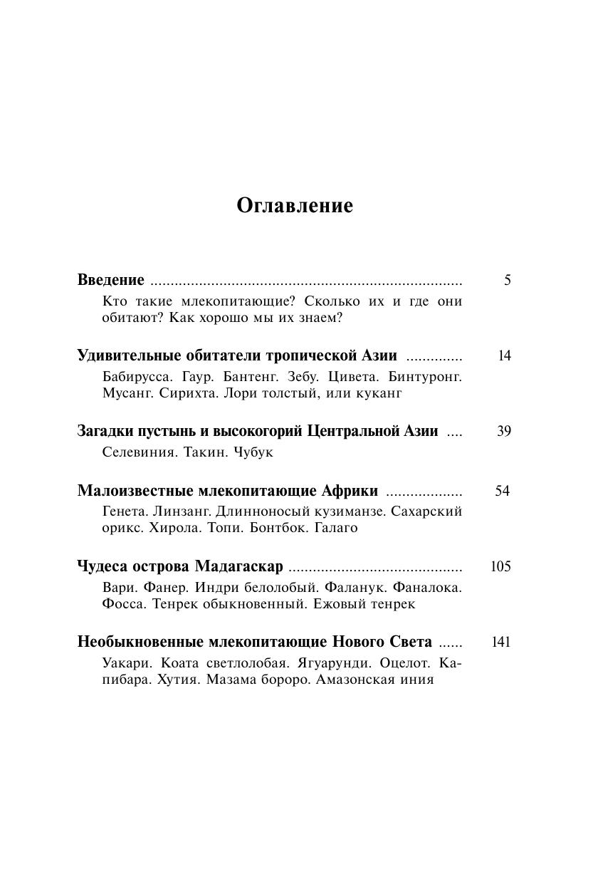 Книга рассказывает о редких и удивительных обитателях нашей планеты, названий которых большинство из нас даже никогда не слышали. Читатель познакомится с самыми необычными млекопитающими тропической Азии, пустынь и высокогорий Центральной Азии, экваториальной Африки, Мадагаскара, Центральной и Южной Америки. Книга адресована всем, кто интересуется зоологией и кому небезразлично будущее окружающей нас дикой природы.