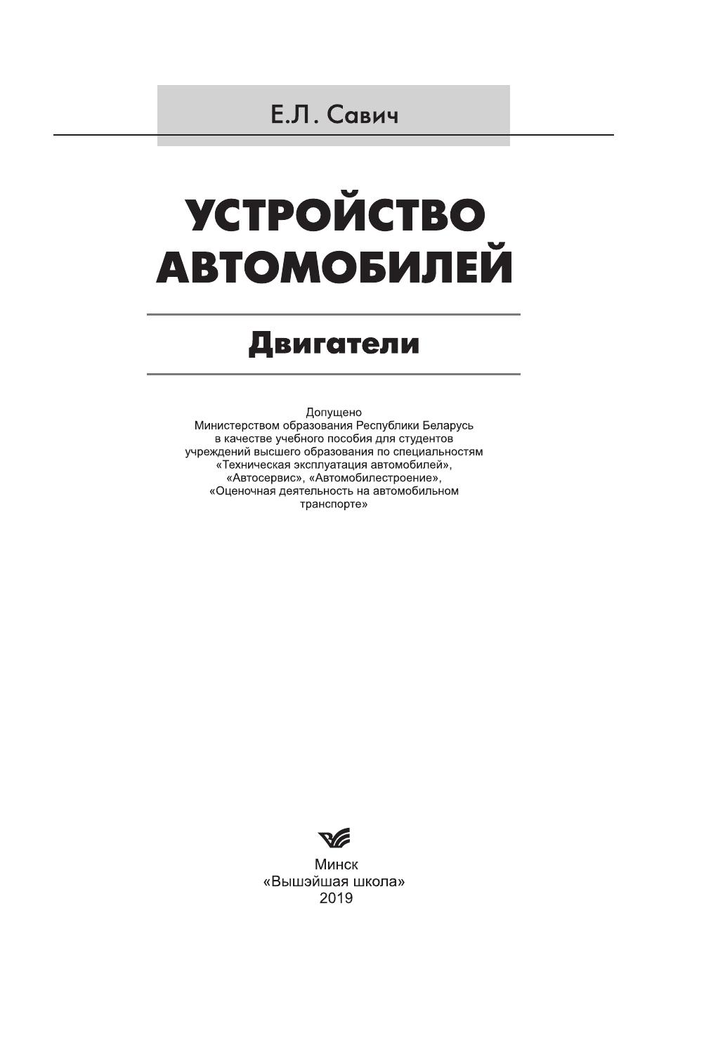 Рассматривается устройство двигателей автомобилей, описаны конструкции и принципы действия их механизмов и систем. Изложены основы электронного управления автомобилей, их агрегатов и систем. Содержатся сведения о конструкции и отличительных особенностях двигателей современных грузовых и легковых автомобилей, в том числе гибридных автомобилей и электромобилей, автобусов отечественных и зарубежных производителей. Для студентов учреждений высшего образования по техническим специальностям автотранспортного профиля. Будет полезно учащимся учреждений среднего специального образования, работникам автотранспортных, автообслуживающих и авторемонтных организаций.