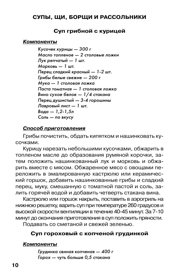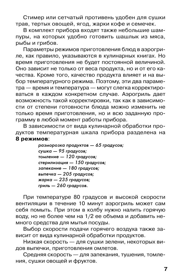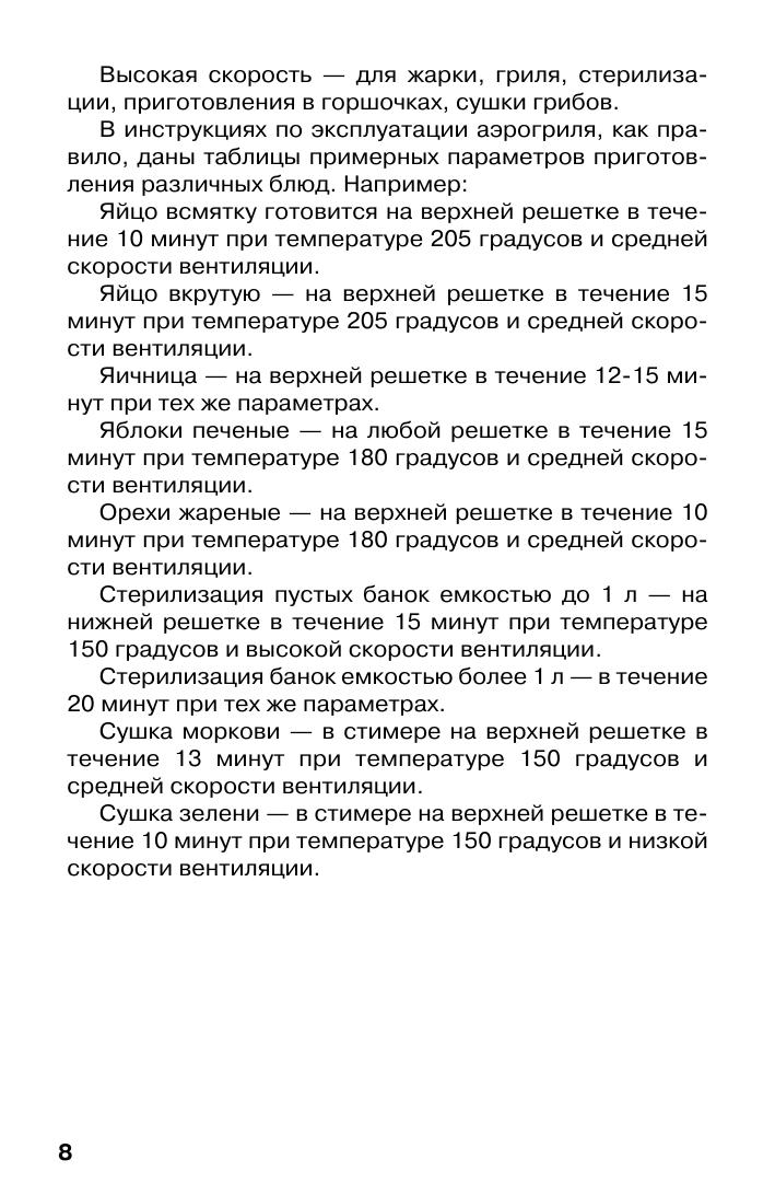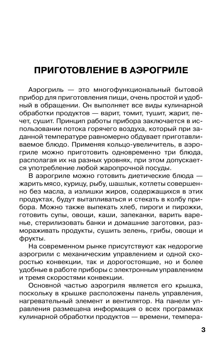 Аэрогриль - это многофункциональный бытовой прибор для приготовления пищи, очень простой и удобный в обращении. Он выполняет все виды кулинарной обработки продуктов - варит, томит, тушит, жарит, печет, сушит. В книге Вы найдете рецепты мясных, рыбных, овощных, грибных блюд, а так же супов и выпечки.