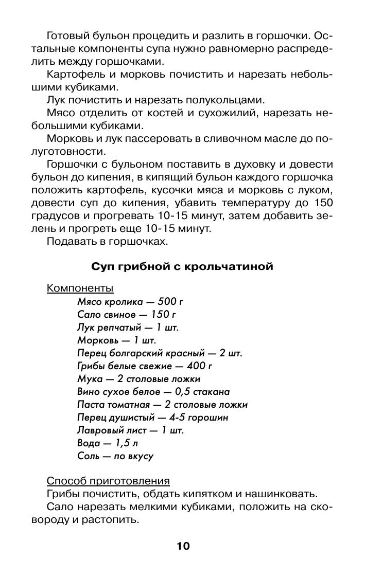 В книге описано своеобразие блюд, томленных в горшочках, а также представлено множество рецептов: бульоны и супы, блюда из мяса и птицы, рыбные блюда, блюда из овощей и грибов, каши и пловы.