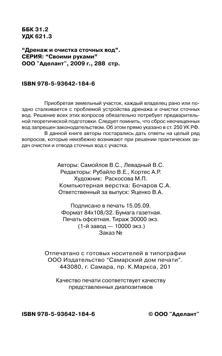 В данной книге авторы постарались дать ответы на целый ряд вопросов, которые неизбежно возникают при решении практических задач очистки и отвода сточных вод с участка.