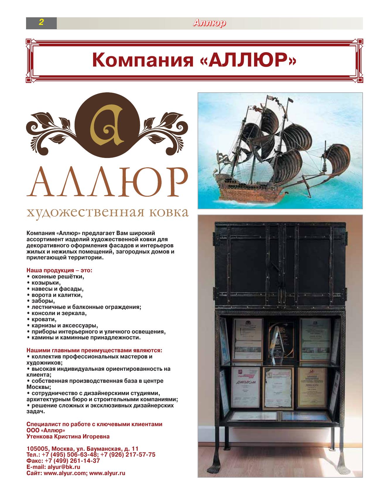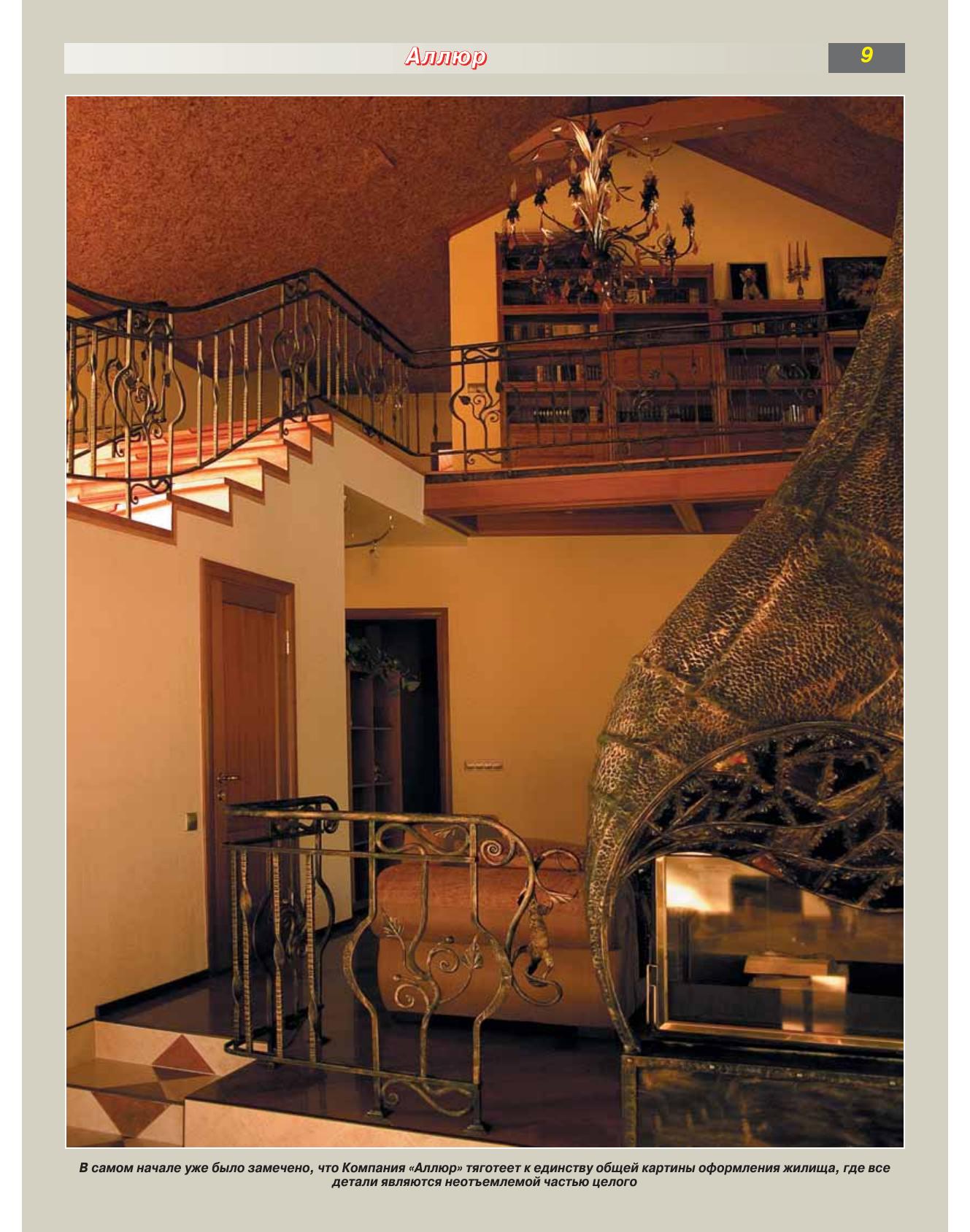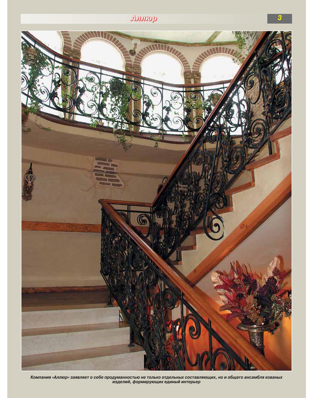 В настоящем сборнике представлены кованые изделия, предназначенные для интерьеров жилища, созданные в творческих коллективах: Компания «Аллюр», ООО «Тетра», ООО «МКС6АРТ», ООО «Рос ка да — Русская ковка», ООО ПК «Тульская ковка», мастерская «Герман», Компания «Технолюкс-Н», «Фабрика немецкой художественной ковки», ООО «Стройметкон», ООО фирма «Горн».