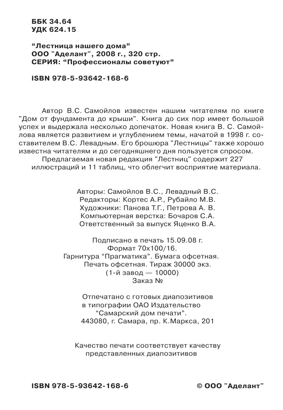Автор В.С. Самойлов известен нашим читателям по книге "Дом от фундамента до крыши". Книга до сих пор имеет большой успех и выдержала несколько допечаток. Новая книга В. С. Самой% лова является развитием и углублением темы, начатой в 1998 г. составителем В.С. Левадным. Его брошюра "Лестницы" также хорошо известна читателям и до сегодняшнего дня пользуется спросом.