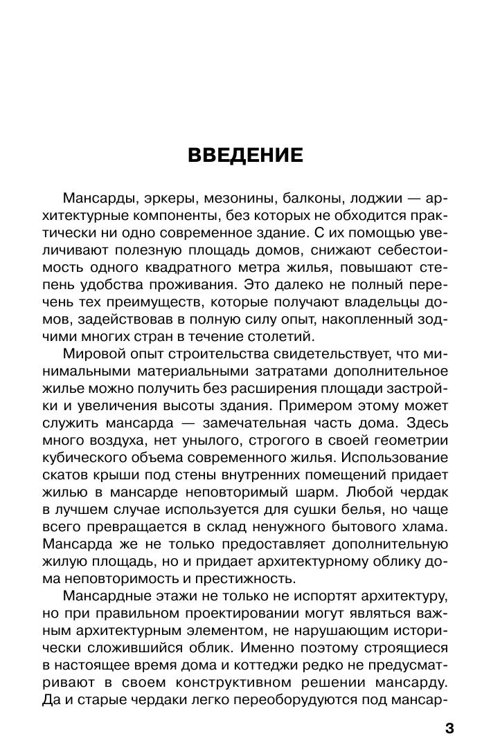 Эта книга для тех, кто готов задействовать при строительстве своего загородного дома (дачи, коттеджа) новые строительные идеи в части обустройства мансард, мезонинов, эркеров, балконов и лоджий. С помощью перечисленных архитектурных составляющих можно существенно увеличить полезную площадь дома, снизить его общую стоимость при одновременном повышении комфортности проживания. Книга со дер жит подробные описания применяемых строительных технологий и практики их применения. Авторы надеются, что эта книга окажет существенную помощь застройщикам. Пусть Ваш дом будет красивым, планировка оптимальной, помещения уютными и комфортными для проживания!