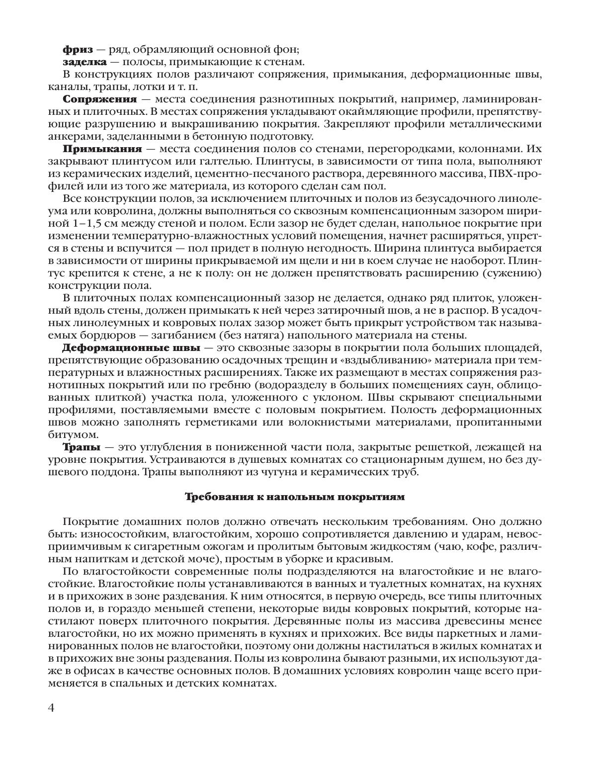 Нельзя пред ста вить себе дом, в котором не было бы пола, хотя бы даже про сто земляного. Поэтому и ремонт квартиры сложно представить без ремонта изношенного напольного покрытия и даже его замены. Но как разобраться в многообразии материалов представленных на современном строительном рынке, как правильно выбрать тот пол, который наиболее по дойдет имен но Вам, как его на стелить и сделать красивым? На эти вопросы и ответит наша книга.