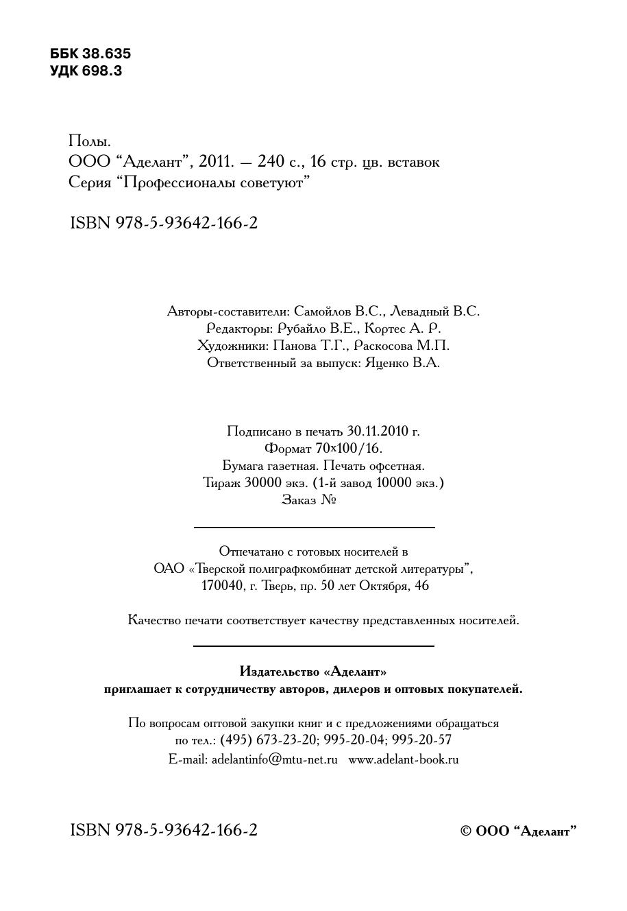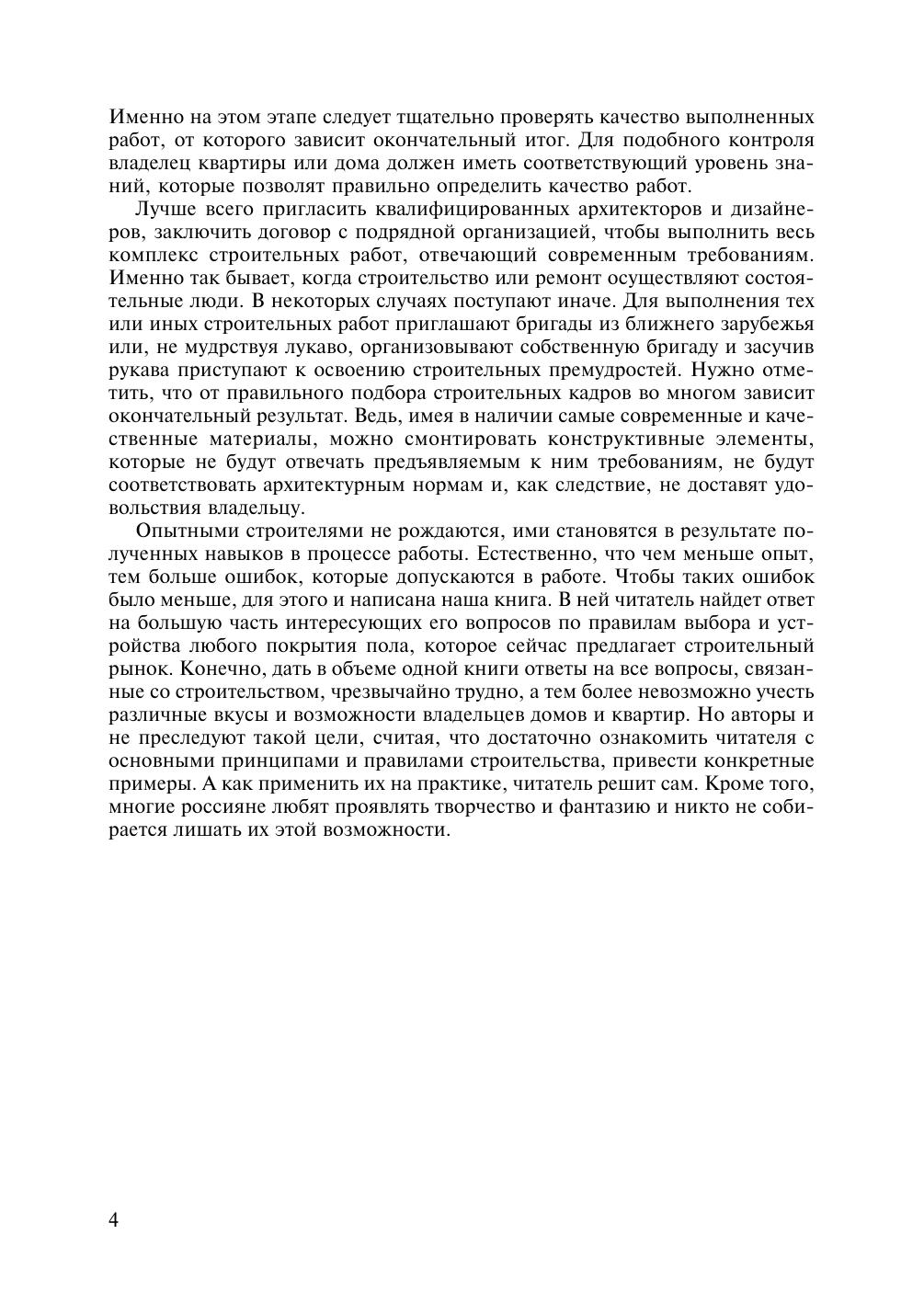 Опытными строителями не рождаются, ими становятся в результате полученных навыков в процессе работы. Естественно, что чем меньше опыт, тем больше ошибок, которые допускаются в работе. Чтобы таких ошибок было меньше, для этого и написана наша книга. В ней читатель найдет ответ на большую часть интересующих его вопросов по правилам выбора и устройства любого покрытия пола, которое сейчас предлагает строительный рынок.