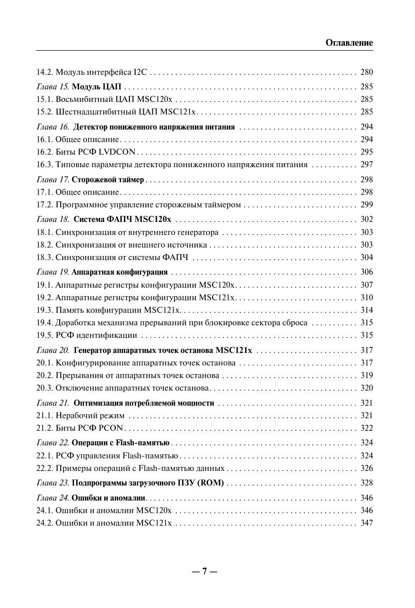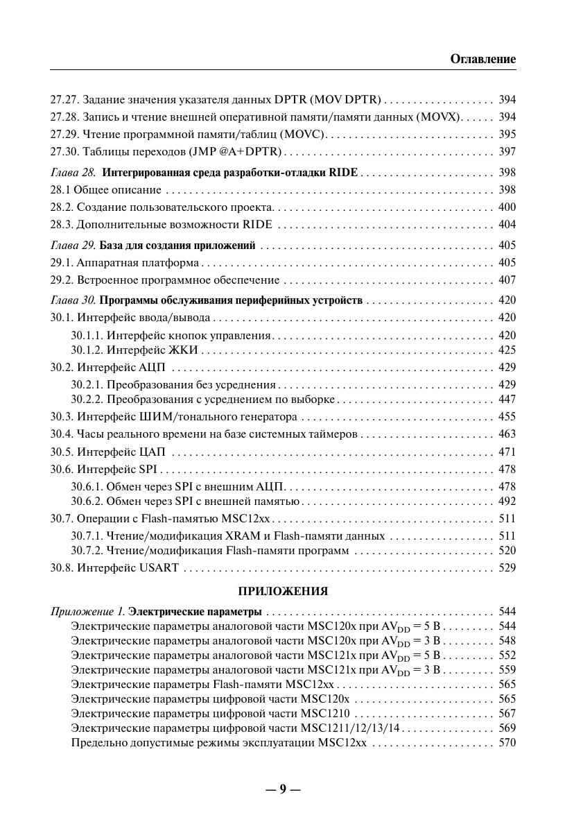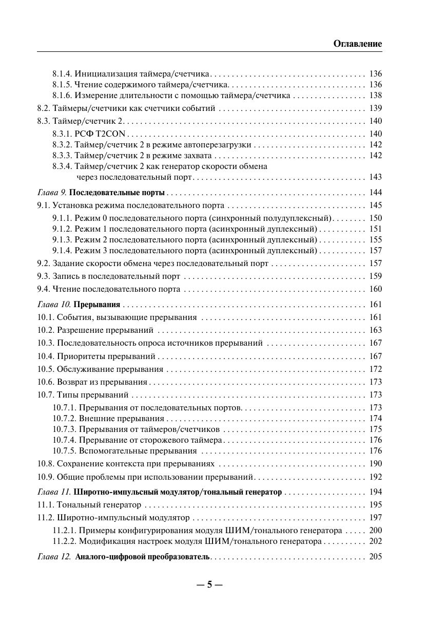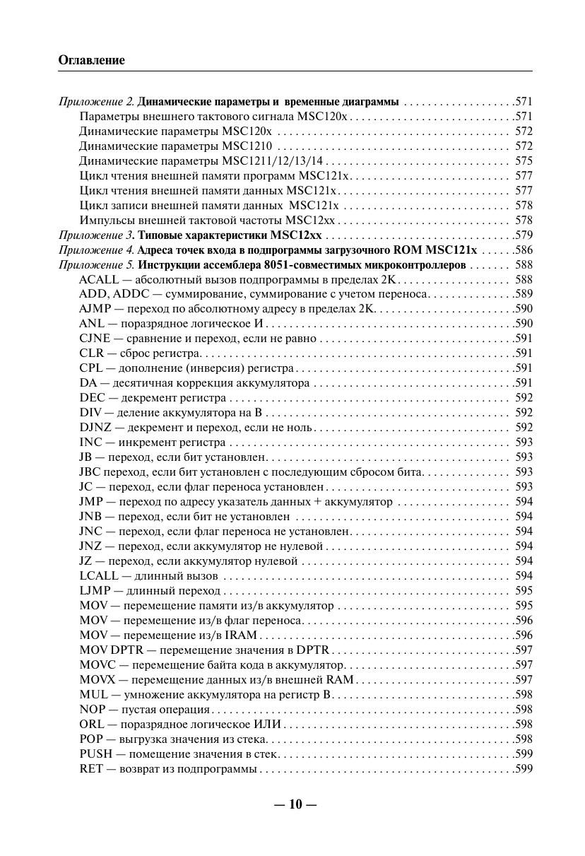 Книга представляет собой практическое руководство и справочное пособие для изучения микросхем семейства MSC12xx и создания на их основе пользовательских проектов. Материалы по семейству MSC12xx в таком объеме на русском языке издаются впервые. Часть I содержит достаточно полную справочную информацию о семействе MSC12xx, включая перечень типовых технических характеристик микросхем семейства MSC12xx, описание их архитектуры, программной модели, аппаратногопостроения и программирования периферийных модулей семейства MSC12xx (каждый периферийный модуль описан в отдельной главе), а также рекомендации производителя по программированию и применению отдельных узлов MSC12xx. Описание работы периферийных узлов и вычислительного ядра MSC12xx сопровождается примерами программных фрагментов на языках ассемблера и С, предоставленными фирмой производителем. Часть II содержит информацию о способах и средствах разработки отладки приложений на основе устройств MSC12xx. В приложениях приведены спецификации параметров и типовые характеристики устройств MSC12xx и другие справочные материалы. Книга предназначена для разработчиков радиоэлектронной аппаратуры истудентов радиотехнических специальностей. Она, несомненно, будет полезнарадиолюбителям, использующим микроконтроллеры в своей практике.