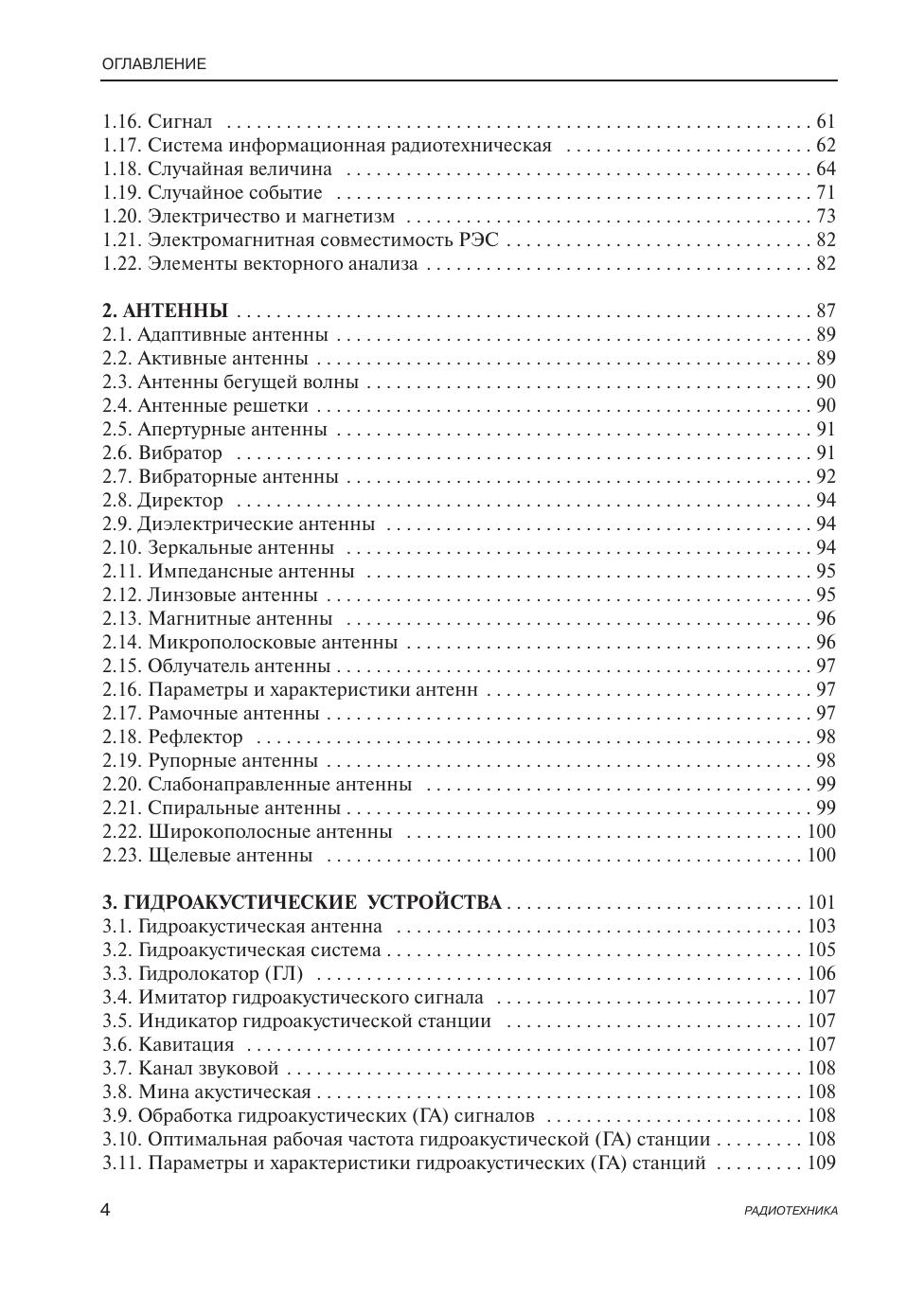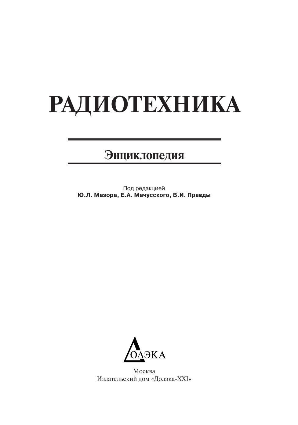 В энциклопедии помещен материал, терминологический состав которого в основном связан с материалами курсов радиотехнических дисциплин, преподаваемых в вузах. Примерно 2500 статей словаря дают толкование примерно 4000 наиболее частоупотребляющихся радиотехнических терминов. Книга может быть использована двояко, как энциклопедия по радиотехнике и как сборник 33 кратких учебников по основным радиотехническим дисциплинам. Для студентов радиотехнических специальностей вузов, а также для студентов смежных специальностей, аспирантов, радиоинженеров, радиолюбителей.
