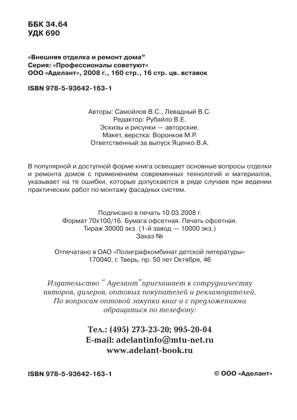 В популярной и доступной форме книга освещает основные вопросы отделки и ремонта домов с применением современных технологий и материалов, указывает на те ошибки, которые допускаются в ряде случаев при ведении практических работ по монтажу фасадных систем.