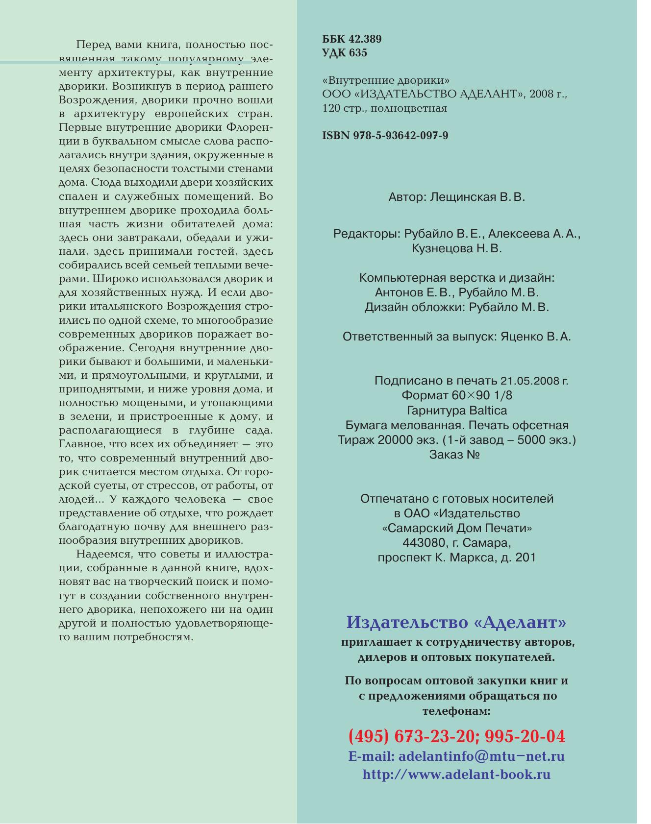 Перед вами книга, полностью посвященная такому популярному элементу архитектуры, как внутренние дворики.
