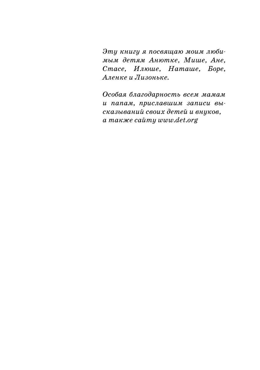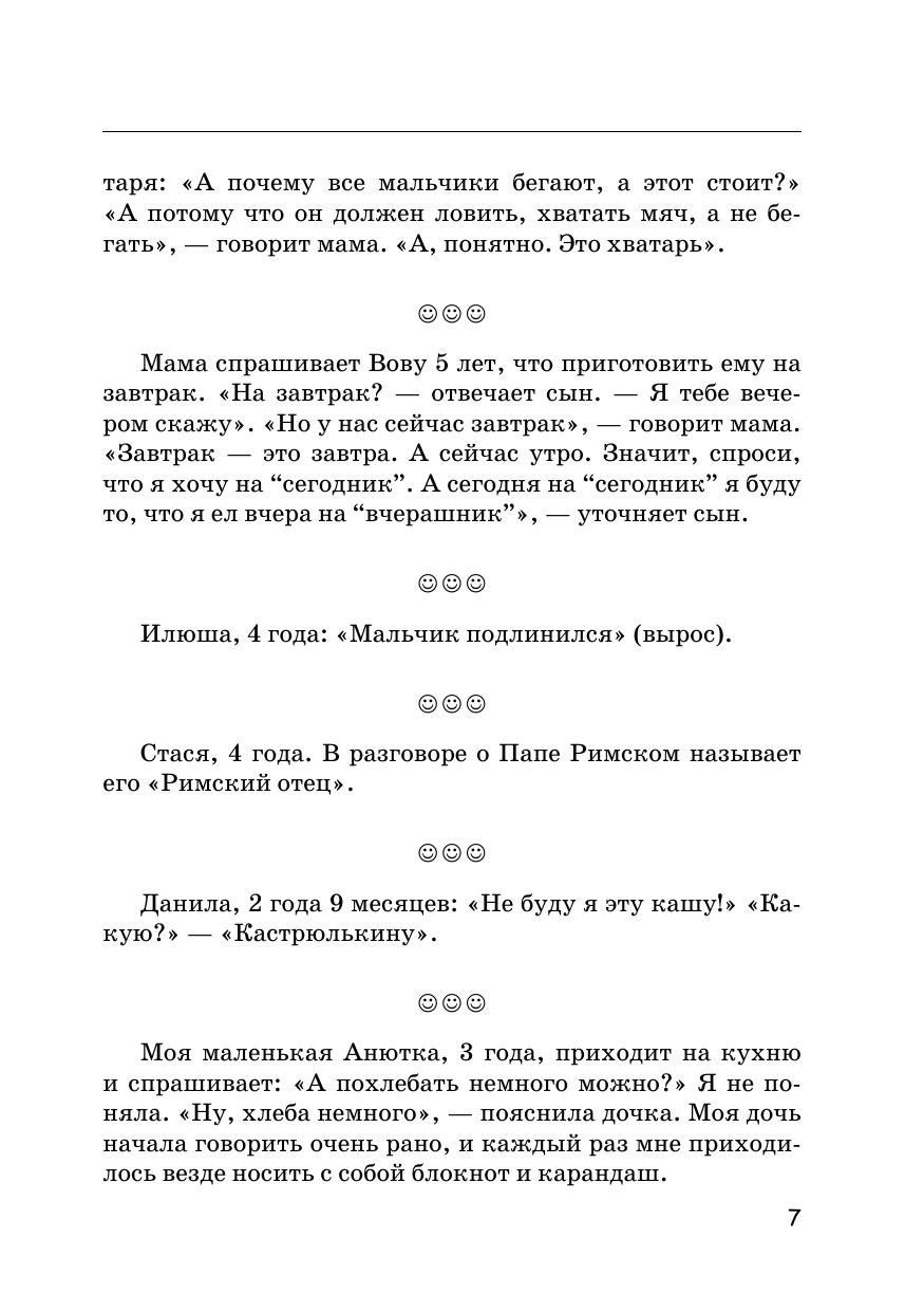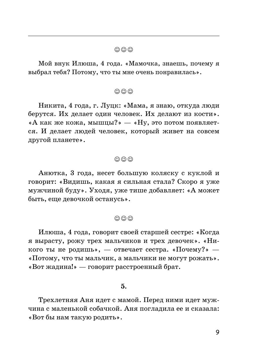 Вам предлагается очень интересная книжка, которая обязательно всем понравится. В ней говорят дети XXI века (от двух до шести лет). Автор книги и друзья — родители малышей — подслушали их. Детям важно все знать, и у них всегда есть свое мнение: «Мама, почему, когда приходит Дед Мороз, я не могу найти папу? Что такое небо? Мама, ты сказала, что это мыло туалетное. А ты меня им моешь?! Человек рождается для счастья, а не для того, чтобы слушаться!»