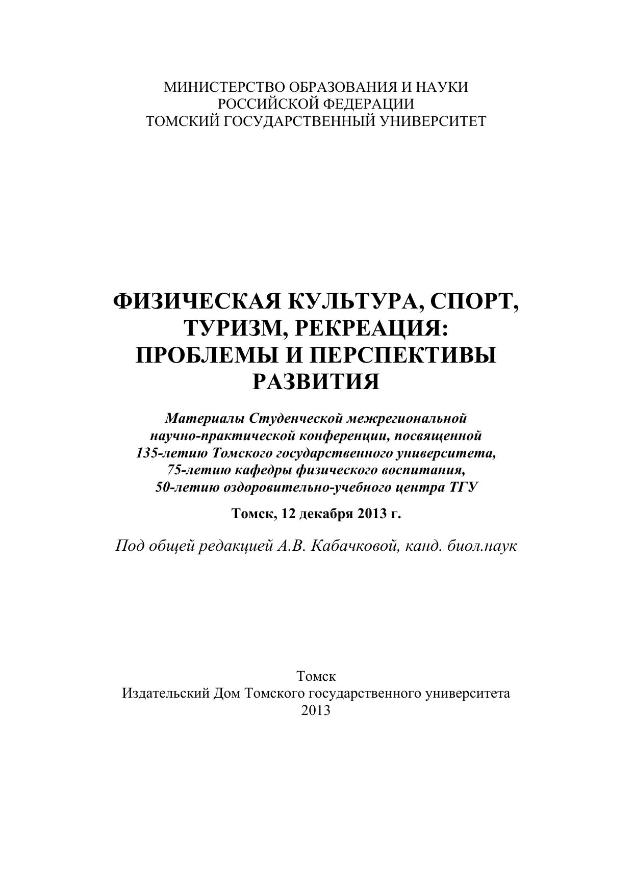 Физическая культура, спорт, туризм, рекреация: проблемы и перспективы развития: материалы Студенческой межрегиональной научно-практической конференции