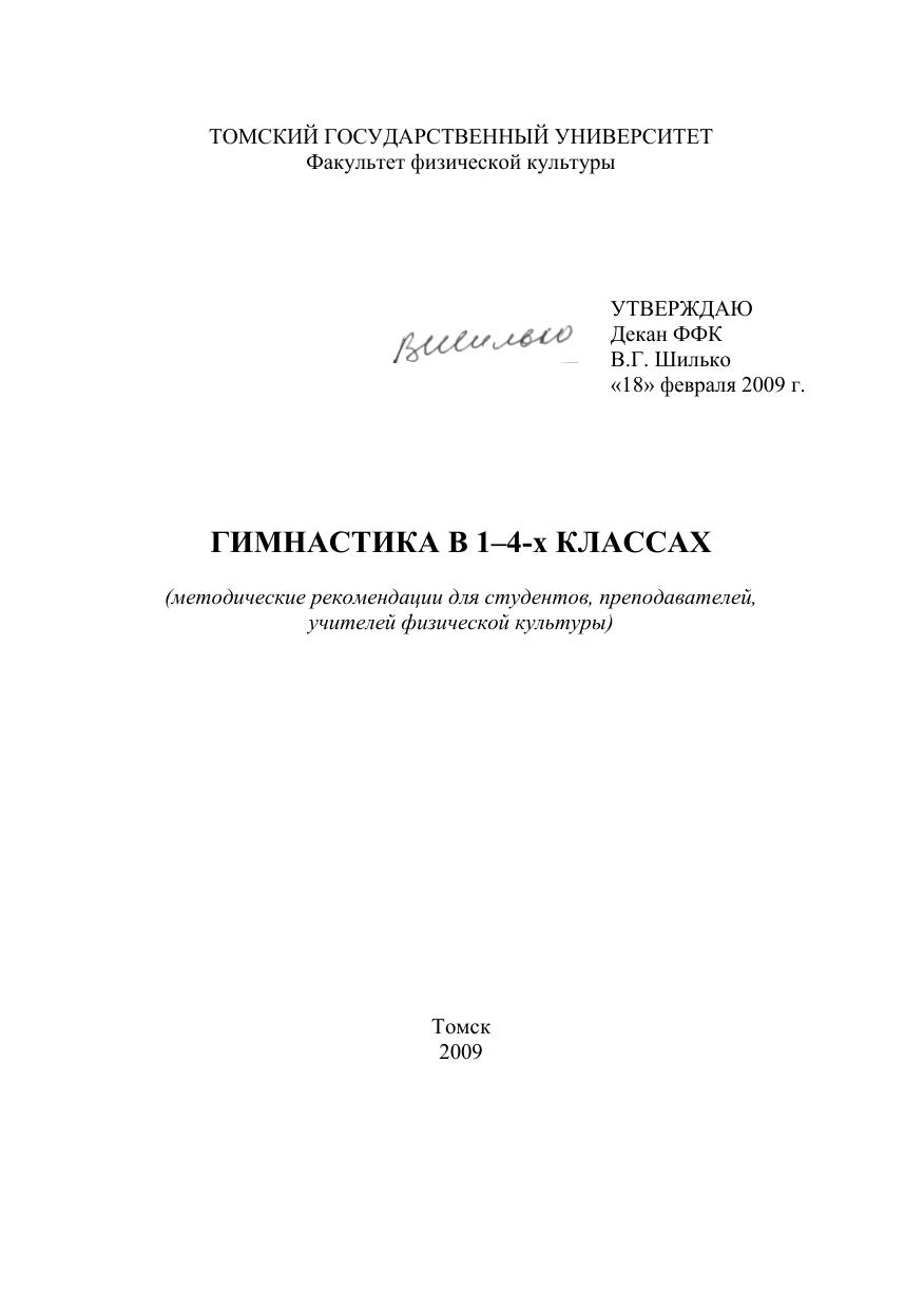 Гимнастика в 1–4-х классах. (методические рекомендации для студентов, преподавателей, учителей физической культуры)