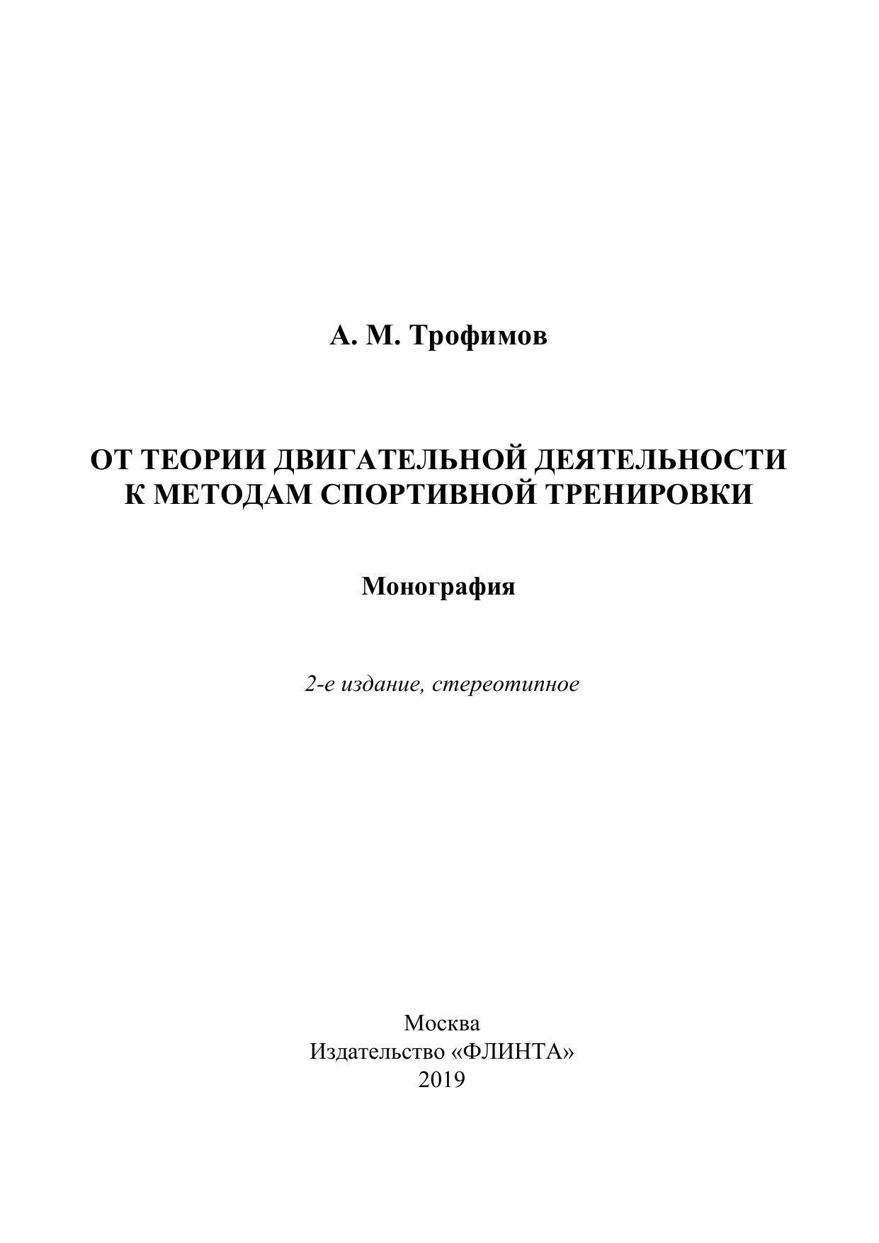 От теории двигательной деятельности к методам спортивной тренировки