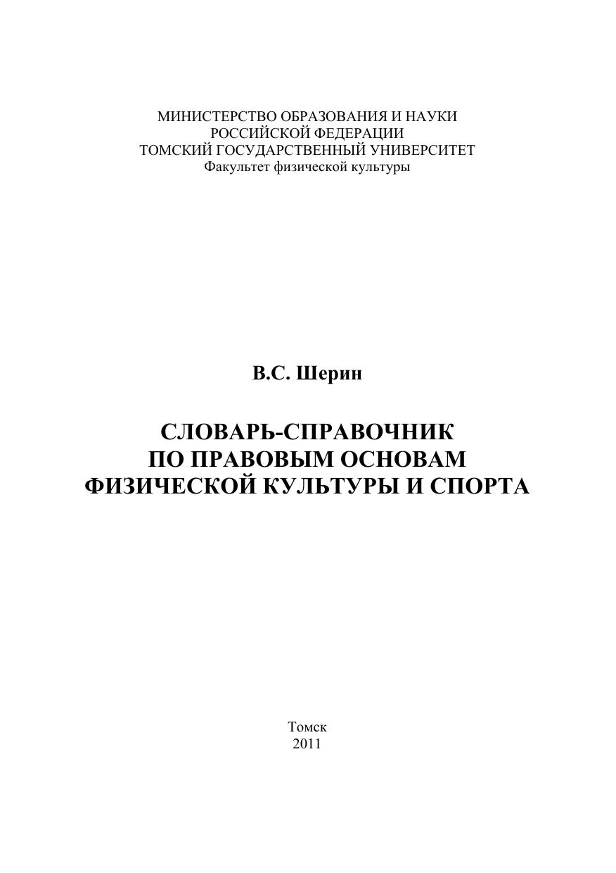 Словарь-справочник по правовым основам физической культуры и спорта