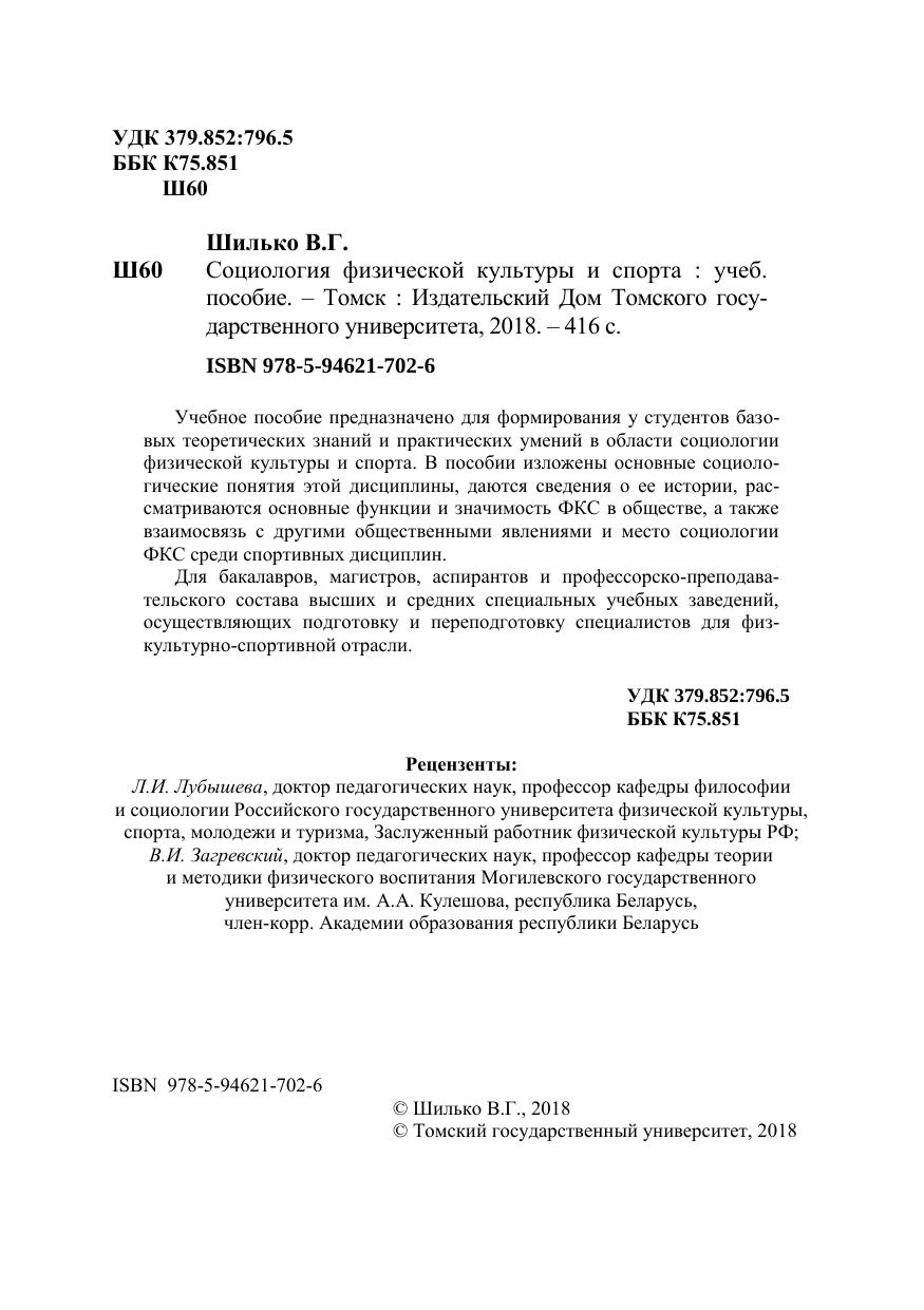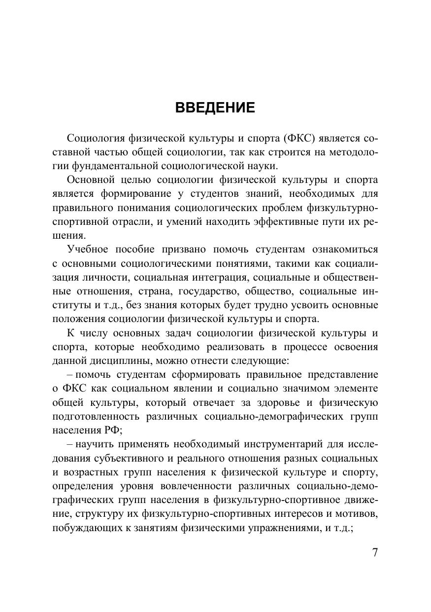 Учебное пособие предназначено для формирования у студентов базовых теоретических знаний и практических умений в области социологии физической культуры и спорта. В пособии изложены основные социологические понятия этой дисциплины, даются сведения о ее истории, рассматриваются основные функции и значимость ФКС в обществе, а также взаимосвязь с другими общественными явлениями и место социологии ФКС среди спортивных дисциплин. Для бакалавров, магистров, аспирантов и профессорско-преподавательского состава высших и средних специальных учебных заведений, осуществляющих подготовку и переподготовку специалистов для физкультурно-спортивной отрасли.