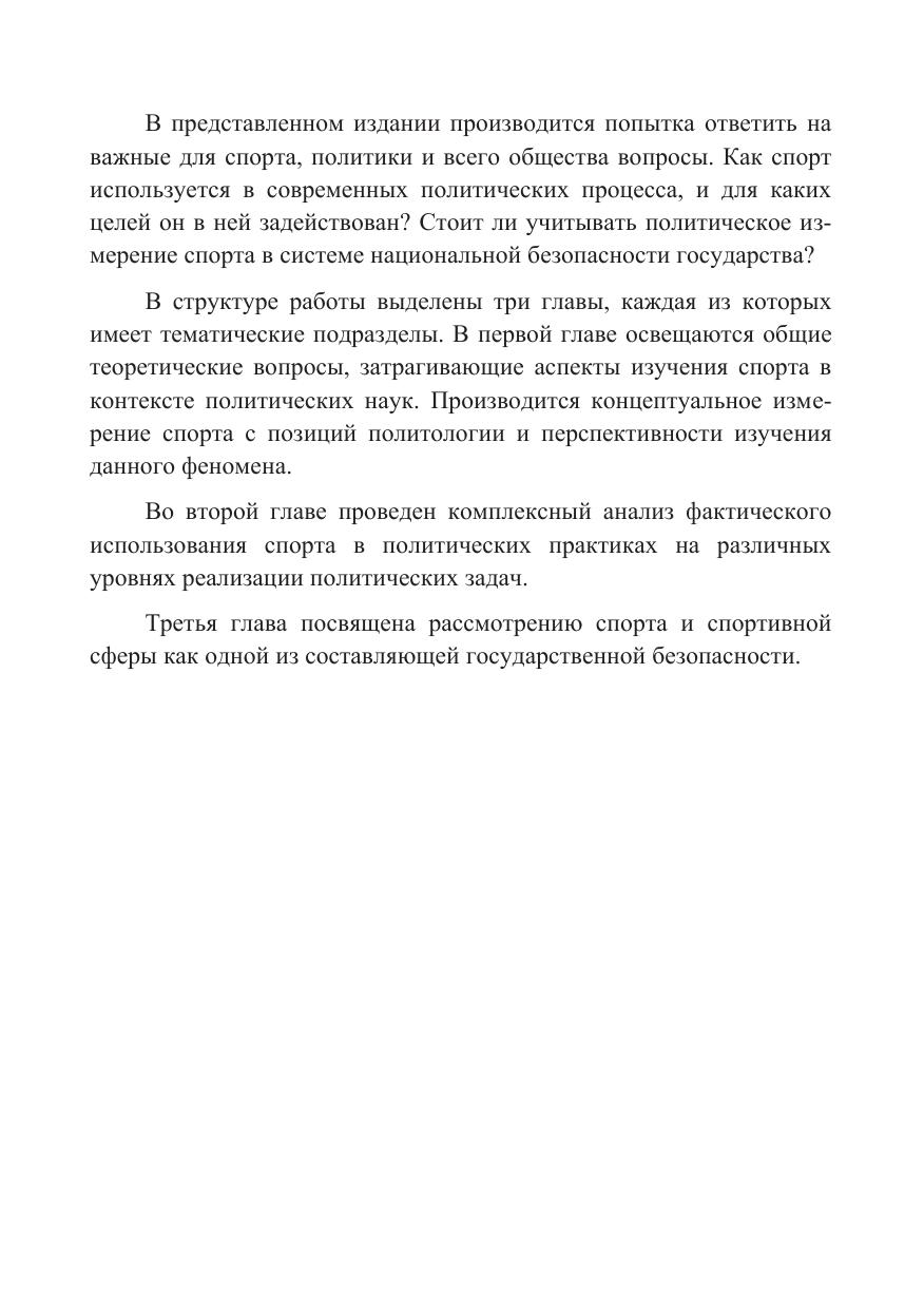 Спорт как инструмент современных политических процессов и осно- ва государственной безопасности: монография