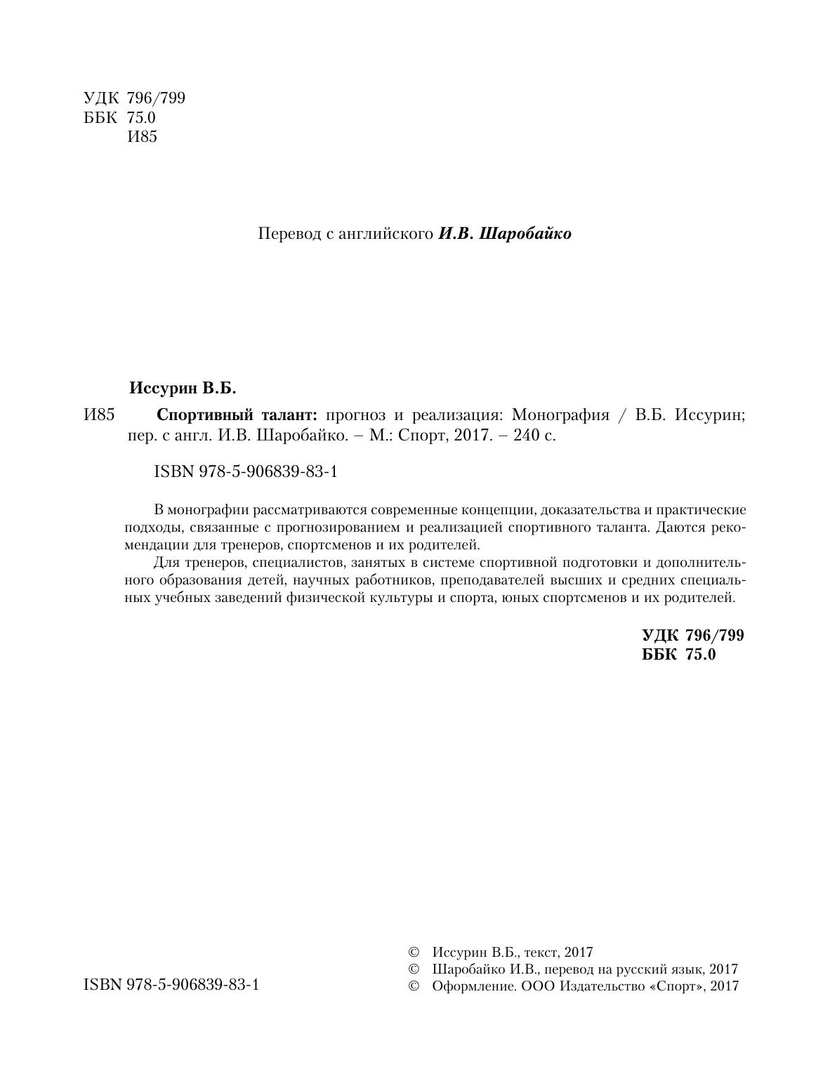 В монографии рассматриваются современные концепции, доказательства и практические подходы, связанные с прогнозированием и реализацией спортивного таланта. Даются рекомендации для тренеров, спортсменов и их родителей.