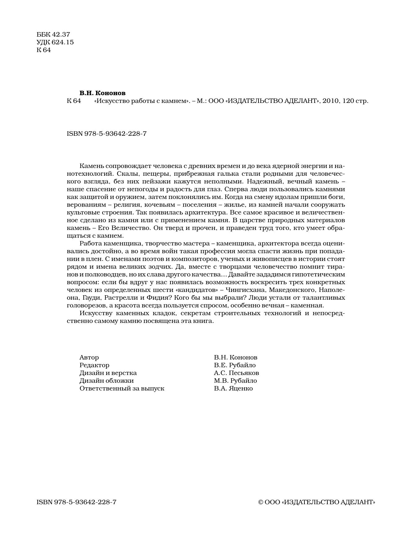 Искусству каменных кладок, секретам строительных технологий и непосредственно самому камню посвящена эта книга.