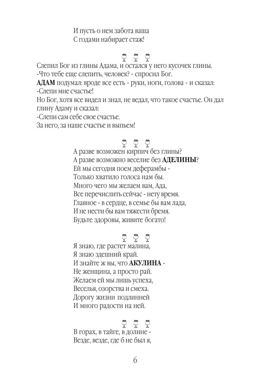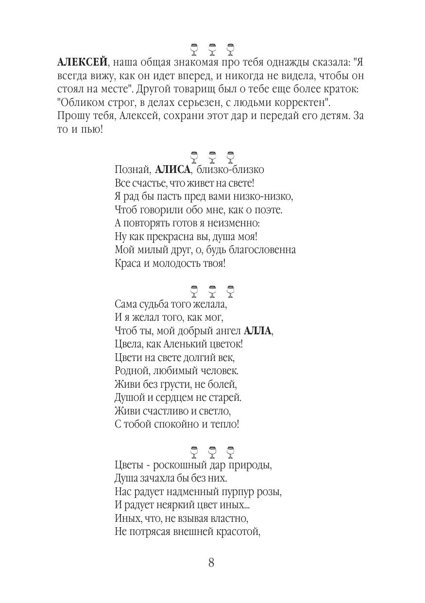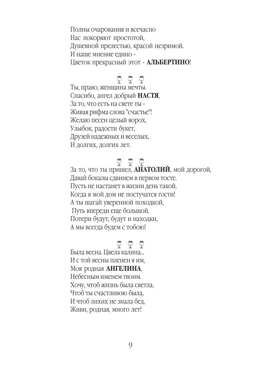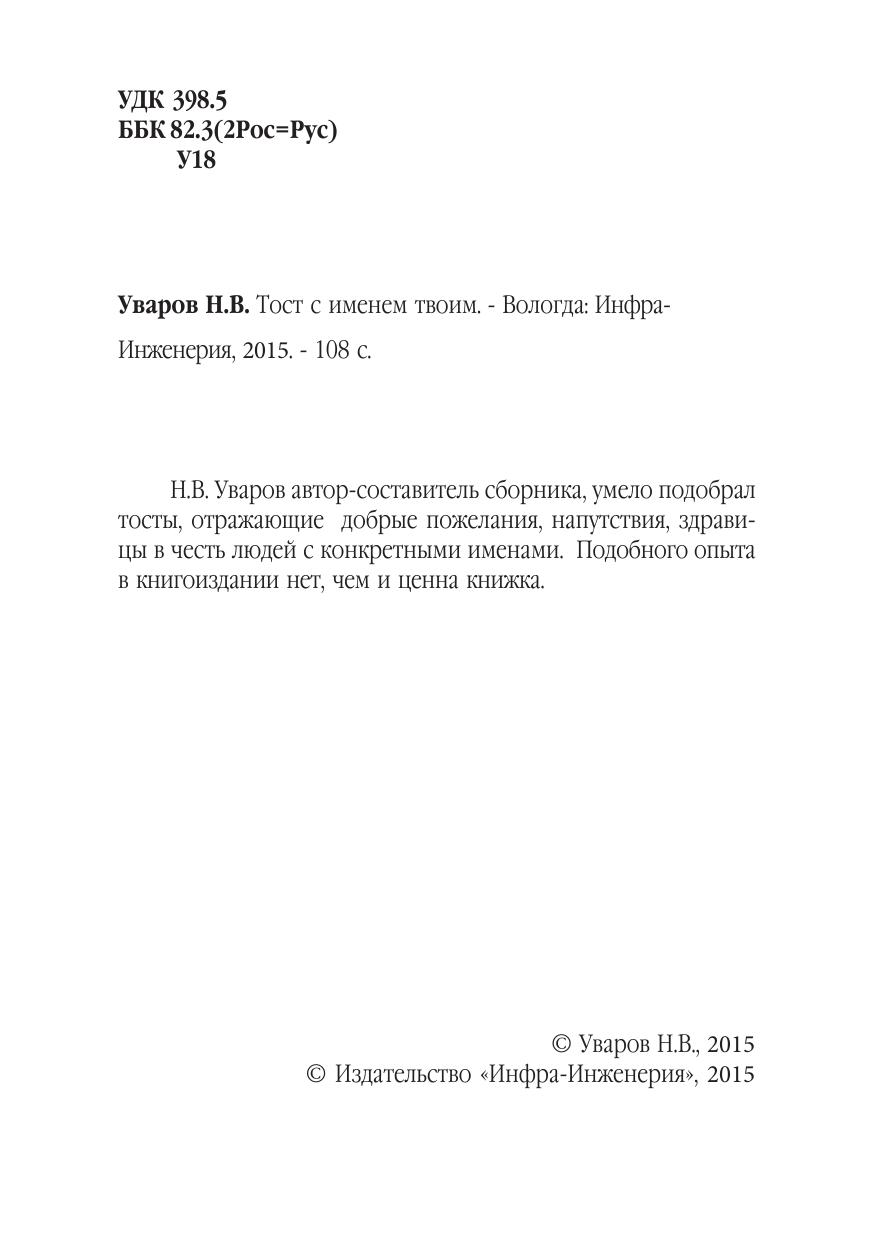 Н.В. Уваров автор-составитель сборника, умело подобрал тосты, отражающие добрые пожелания, напутствия, здравицы в честь людей с конкретными именами. Подобного опыта в книгоиздании нет, чем и ценна книжка.